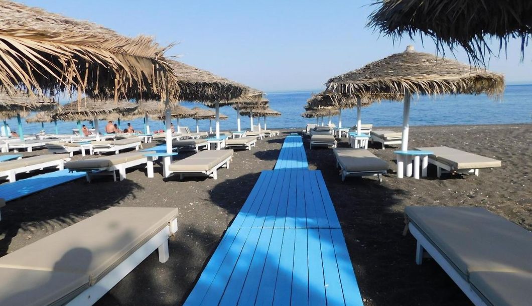 Хотелът се намира на крайбрежната улица в Периса, на една крачка от известния черен плаж на о-в Санторини. Летище Санторини се намира на 13 километра, а столицата Фира на 12 км. Около хотела, на крайбрежната улица има множество таверни, ресторанти, кафенета и магазини.