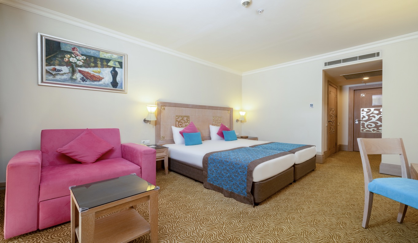 Хотелът разполага с общо 356 стаи, от които 309 стандартни стаи и 41 фамилни стаи. Всички стаи са оборудвани с: климатик, сателитна телевизия, баня с душ, сешоар, телефон, минибар (безалкохолни напитки), сейф (безплатен), балкон, безжичен интернет.
