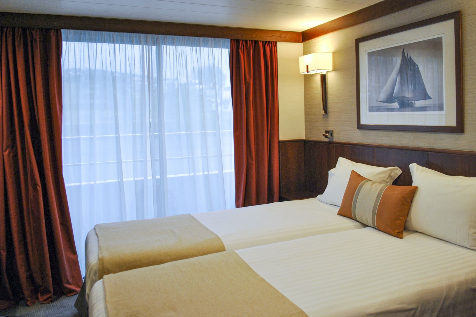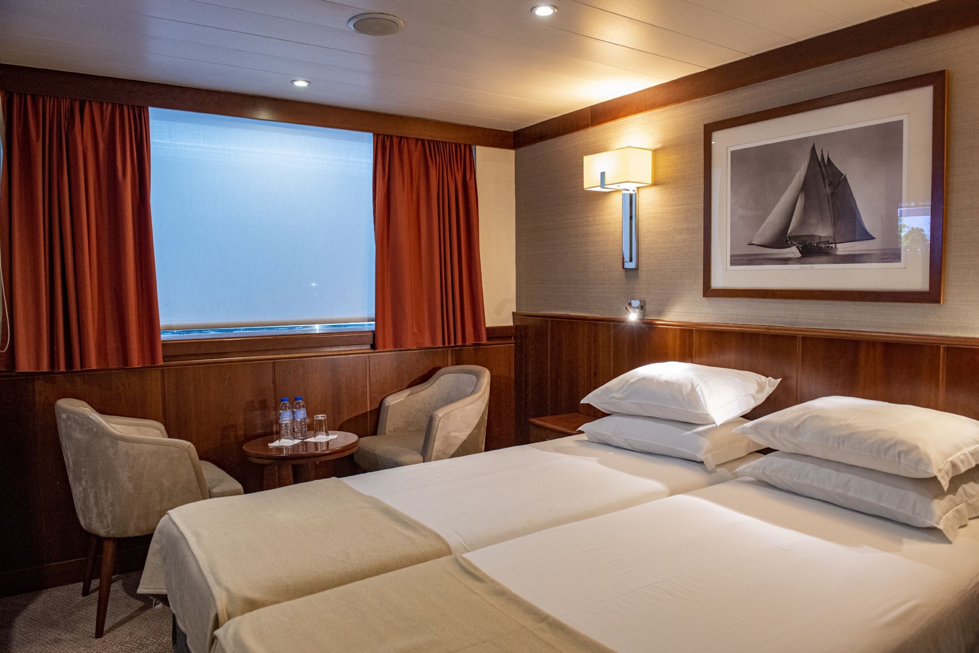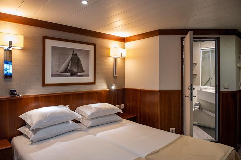 Корабът има 65 каюти, разположени на втора и трета палуба, като тези на втора палуба са с панорамни прозорци, които не се отварят. Каютите на трета палуба имат балкони. Всички каюти имат климатик с индивидуален контрол, сейф, ТВ, баня и тоалетна.