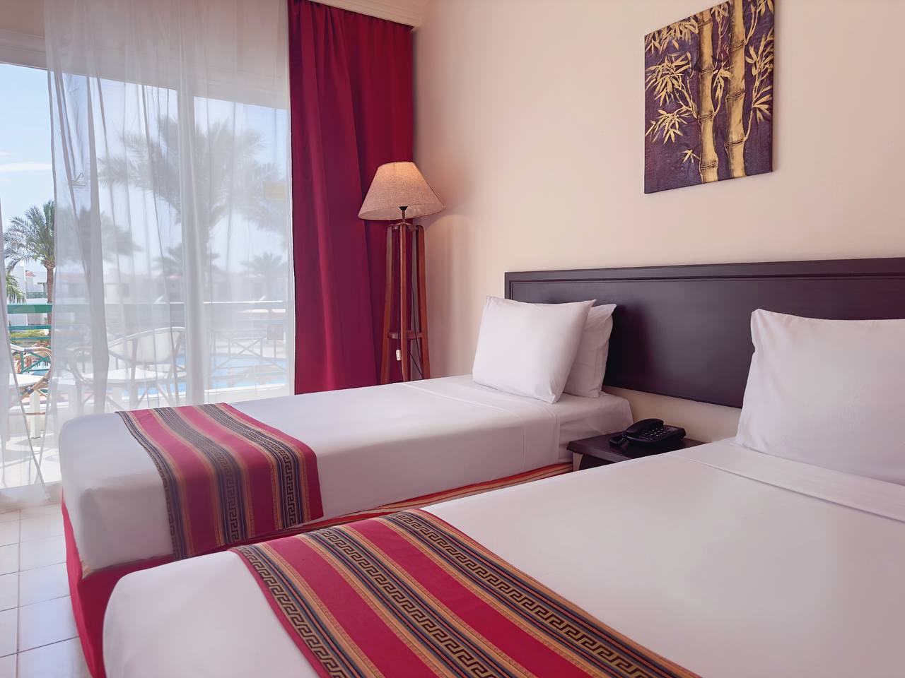 Хотелът разполага с общо 244 стаи, разположени в 3 блока, от които 149 Standard room (с изглед градина или басейн - 28 м2), 85 Deluxe room (с изглед градина или басейн - 32 м2), 10 Deluxe Junior Suite (1 спалня - 48 м2).
