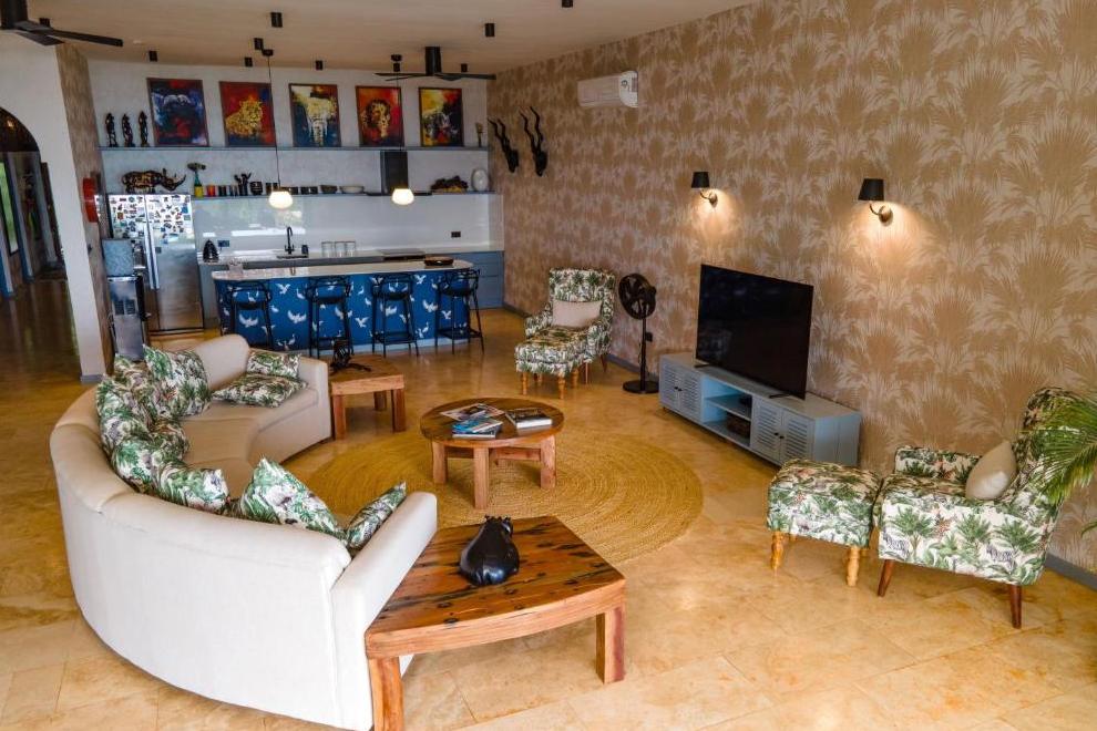 Вила 1 е вила с площ 300 кв. м. с 4 спални и 3 бани, а вила 2 е вила с площ 200 кв. м. с 2 спални и 2 бани. Заедно могат да се настанят до 12 гости и могат да се наемат поотделно или заедно. Идеален за семейства с деца от всички възрасти, групи приятели или за хора, търсещи пълно уединение. Предлага се допълнителна кошара за бебета под 3 години. И двете вили имат мраморни подове навсякъде, ръчно изработени мебели по поръчка от местно добито манга и кокосово дърво, произведения на изкуството от целия африкански континент, вътрешни и външни зони за хранене, градински хамаци, климатик. Вилите предлагат услуга на оптимален лукс с много включени удобства и предимства: I-pads, Bluetooth високоговорители, LED телевизори с плосък екран с цифрови канали, включително BBC, CNN, спорт и филми, DVD плейъри с домашна библиотека от над 200 DVD, включително много класически филми, сериали и детски филми, безплатен Wi-Fi, както и някои домашни уреди за упражнения; Включени са също тоалетни принадлежности Inaya, безплатна бутилка пенливо вино, пресован пресен сок и поднос с тропически плодове. Вилите са оборудвани с персонал от личен готвач, сервитьор, иконом, иконом, охрана и управител на вила – всички на разположение, за да задоволят всяка ваша прищявка.