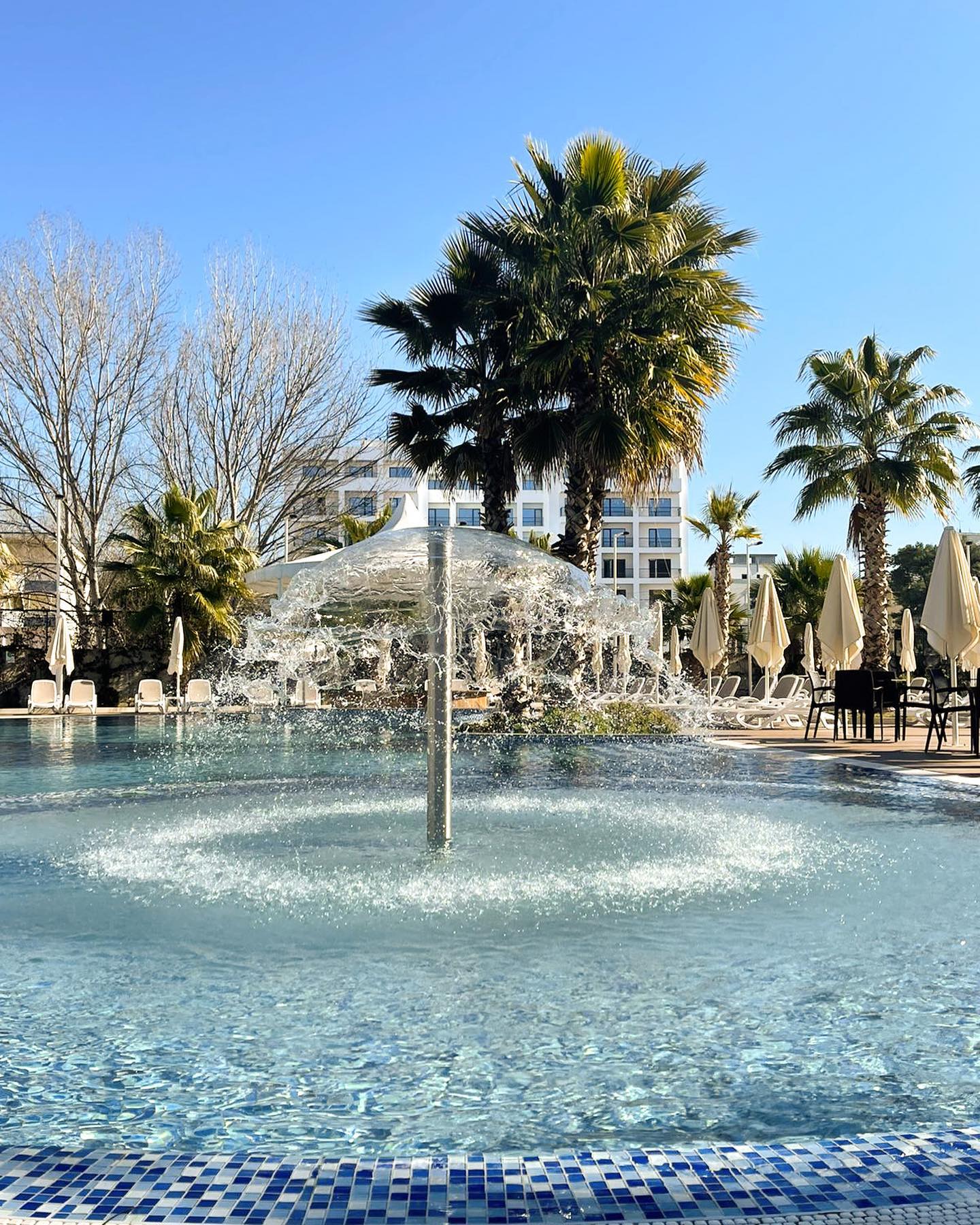 Хотела разполага с един основен ресторант с просторна зала, бар с богата селекция от напитки, два открити басейна, единият от които е с водни пързалки - подходящ за деца, детска площадка, вътрешен басейн, модерен СПА център с разнообразни терапии, фитнес зала.