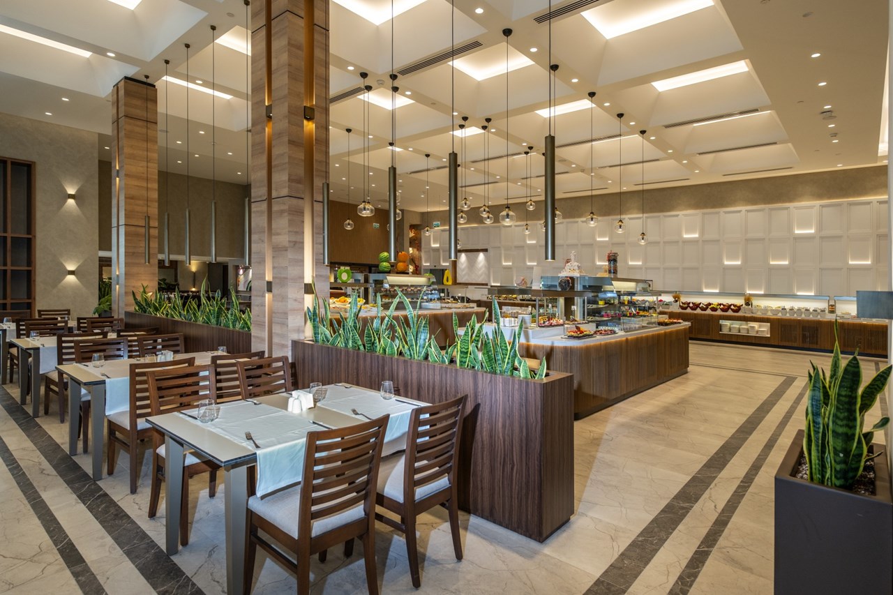 Основен ресторант, 4 а-ла-карт ресторанта (рибен и барбекю - платени, турски, италиански - с предварителна резервация, съгласно концепцията на хотела), 5 бара (1 от които 24 часа), 3 открити басейна, водни пързалки, кино, амфитеатър, СПА център, дискотека, магазини, конферентна зала, паркинг.