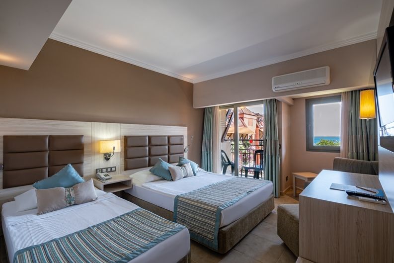 Стандартни и фамилни стаи. Всички помещения са с балкон и могат да са с изглед море, изглед градина, изглед басейн.