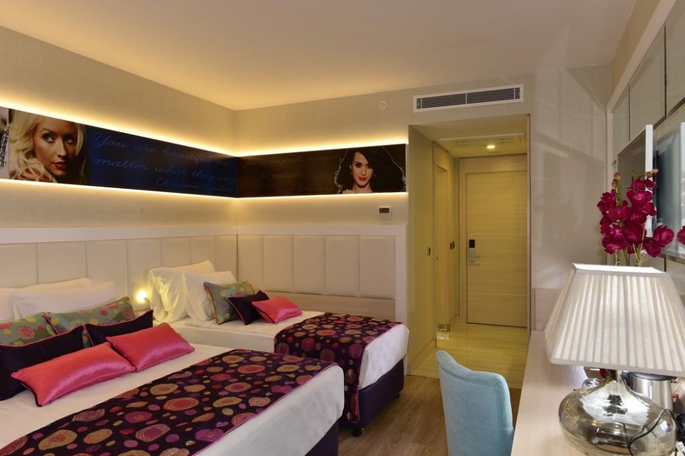 Хотелът разполага с общо 330 стаи, разположени в една 7-етажна основна сграда, от които 265 Deluxe room (с изглед суша или море - 30м2), 60 Family room (с изглед суша или море, 2 спални, 1 баня - 50 м2), 5 Deluxe fantasy room terrace with jacuzzi (1 спалня, джакузи на терасата - 58 м2). Всички стаи са оборудвани с климатик, телевизор, телефон, баня с душ, сешоар, сет за кафе/чай, минибар (безалкохолни напитки – безплатен, при пристигане), сейф (безплатен). Почистване на стаите и смяна на кърпите - всеки ден, смяна на спалното бельо - пъти в седмицата.