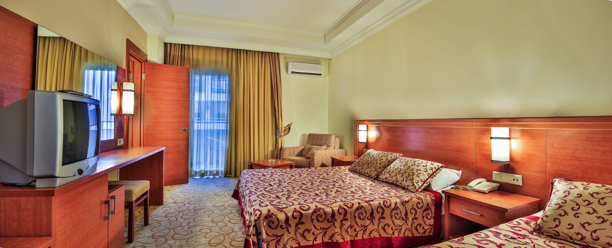 Хотела има 514 стаи, които разполагат с баня, сателитна телевизия, телефон, сешоар, климатик, балкон, сейф с/у допълнително заплащане, ежедневно почистване на стаите, смяна на спалното бельо - 2 пъти седмично.