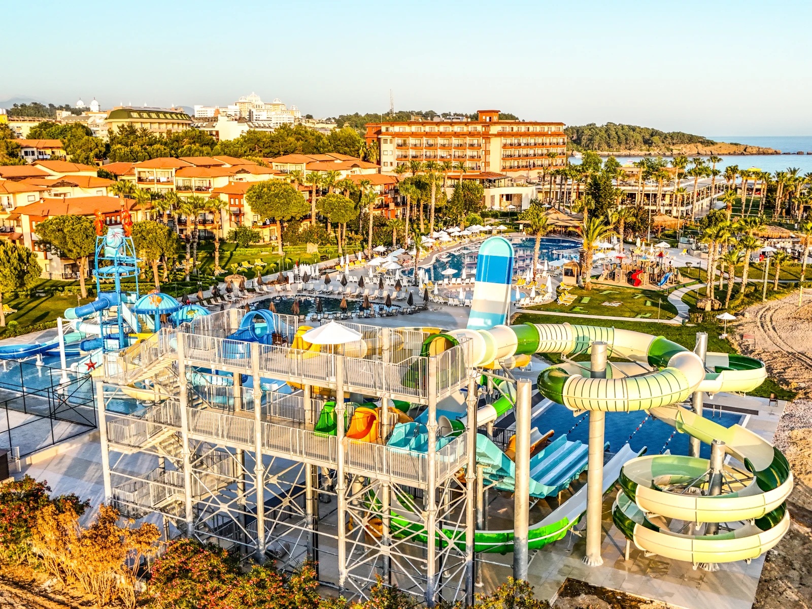 Основен ресторант, 3 а-ла-карт ресторанта (турски, италиански, средиземноморски - с предварителна резервация, съгласно концепцията на хотела), 5 бара, 3 открити и 1 закрит басейн, водни пързалки, амфитеатър, дискотека, СПА център, магазини, 3 конферентни зали, паркинг.