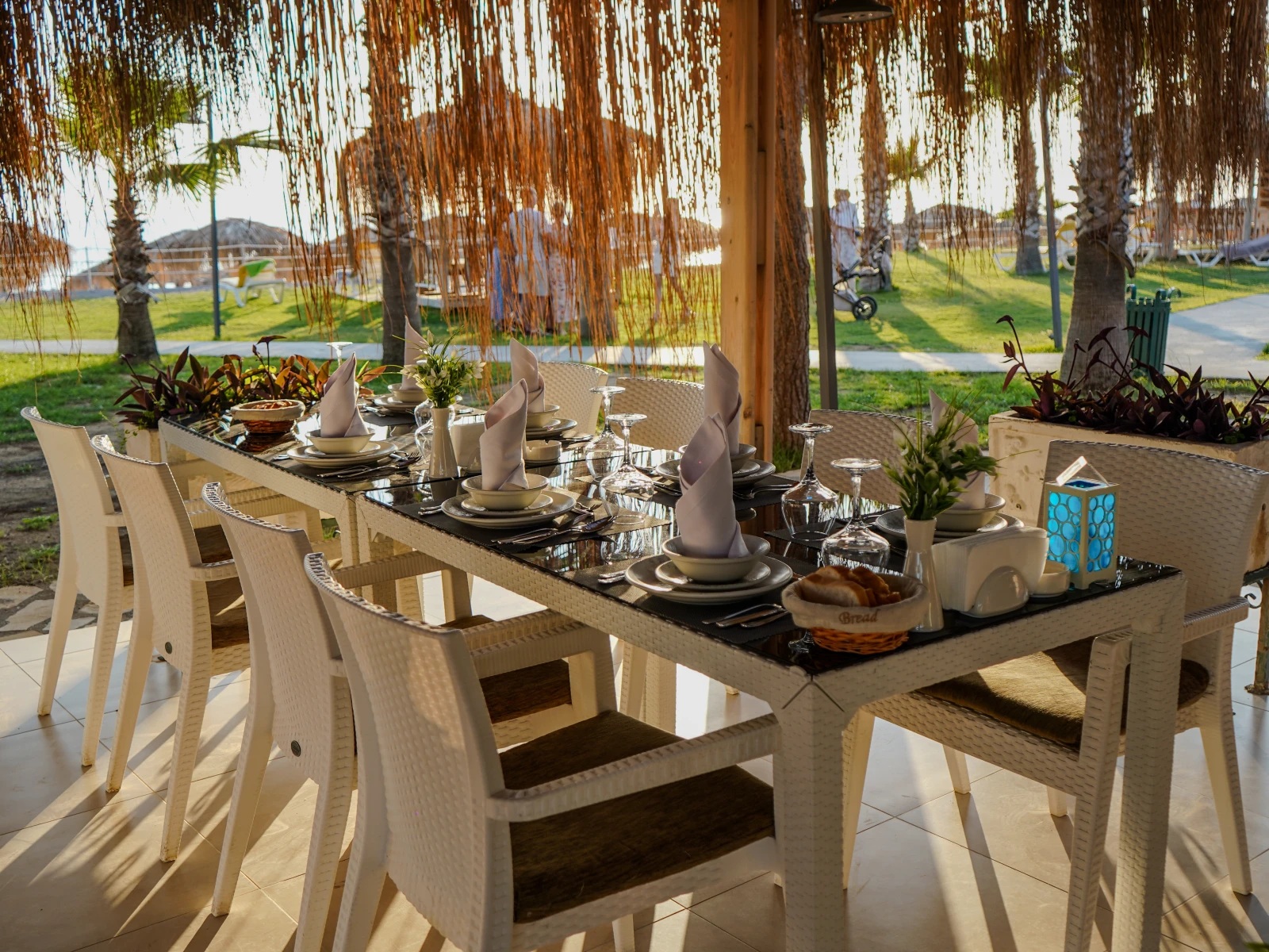 Безплатни услуги: Сауна, турска баня, парна баня, фитнес, тенис корт (с твърдо покритие), тенис на маса, дартс, футболно игрище, боча, плажен волейбол, аеробика, водно поло, жива музика, анимация, Wi-Fi (в общи площи).