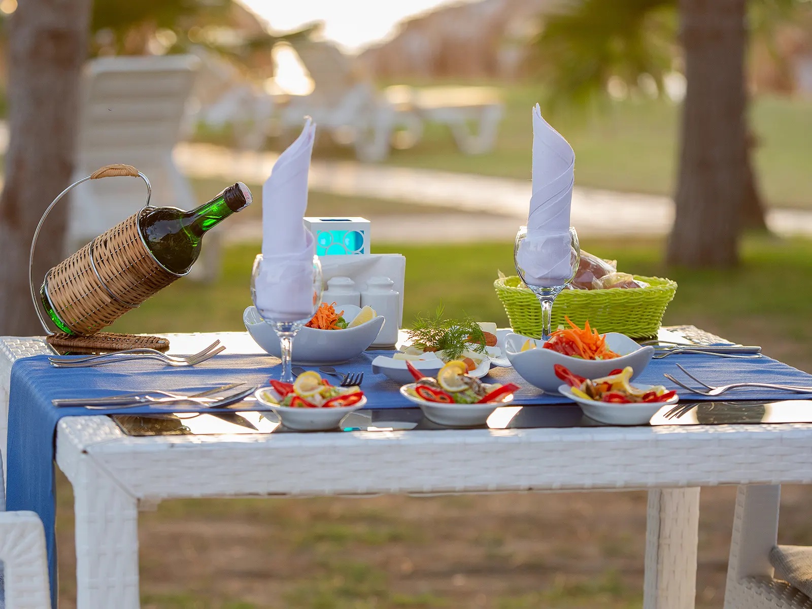 All Inclusive - закуска, обяд и вечеря на шведска маса, междинни хранения, местни алкохолни и безалкохолни напитки - без лимит (съгласно концепцията на хотела).