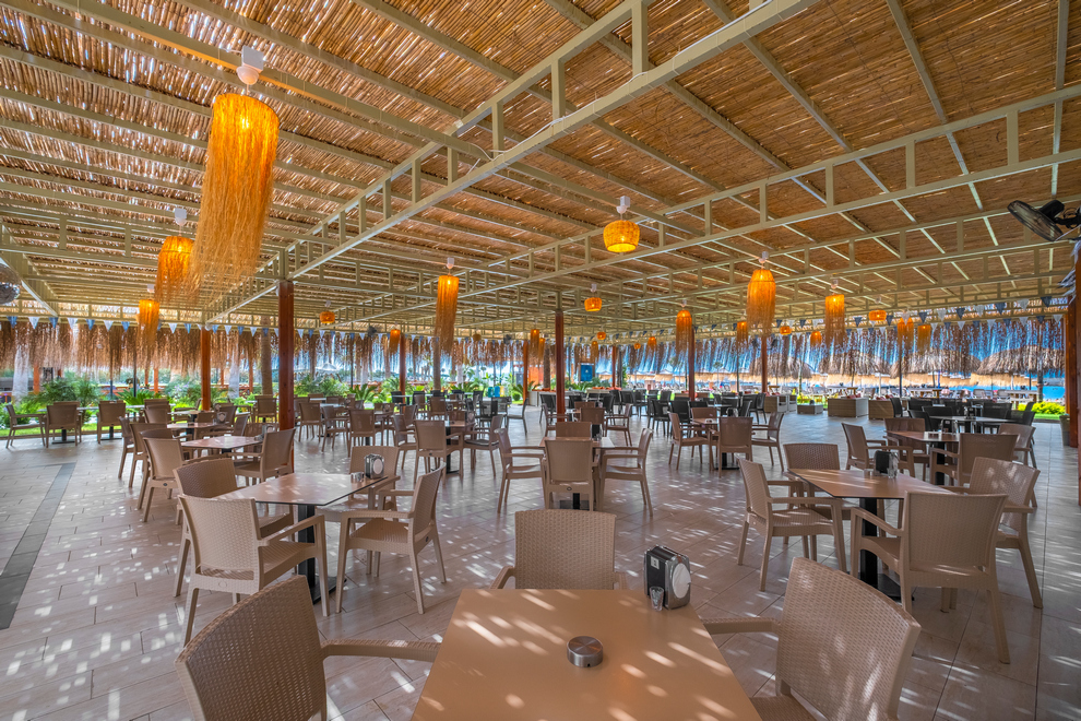 На разположение на гостите има основен ресторант Majesty Main Restaurant и 2 а`ла карт ресторанта: Seagate Fish A La Carte Restaurant и Royal Meat A La Carte Restaurant. Освежаващи напитки и закуски се сервират в Queen Bar, Cosmopolitan Pub Bar, City Lounge Bar, бар при басейна, бар на плажа,Anex Bar и Street Food Bar (на плажа).