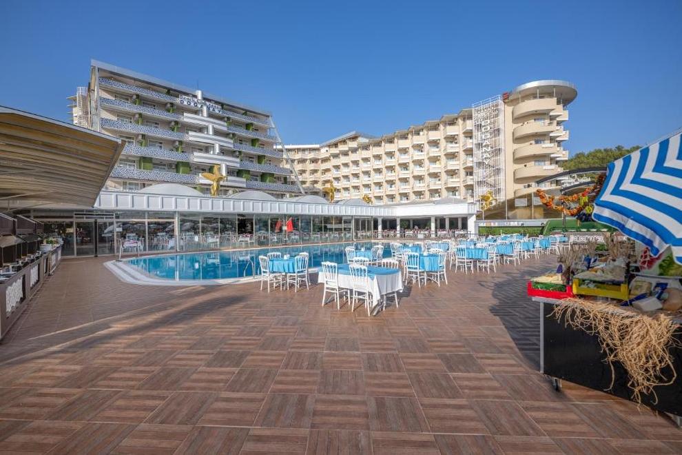 Хотелът е разположен на 125 км от гр. Анталия, на 7 км от Алания, на 5 км от селището Конаклъ, на 50 м от собствения си плаж (до плажа се достига чрез подземен преход). Построен през 1991 г., общата площ на хотела е 20 000 кв.м, последна реновация е правена през 2016 г.