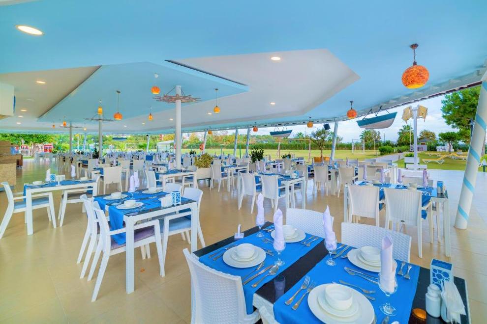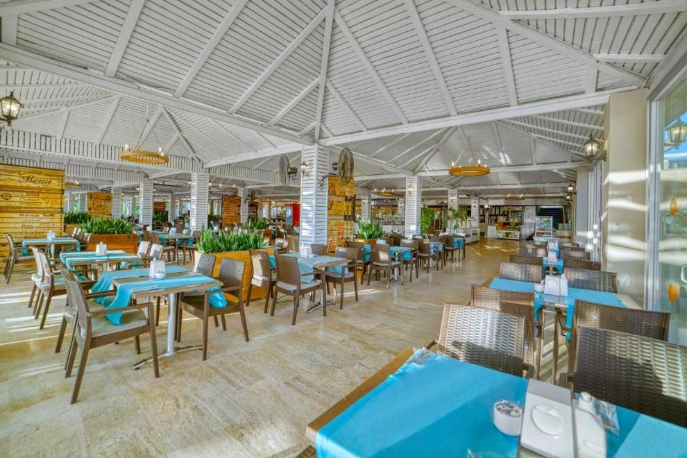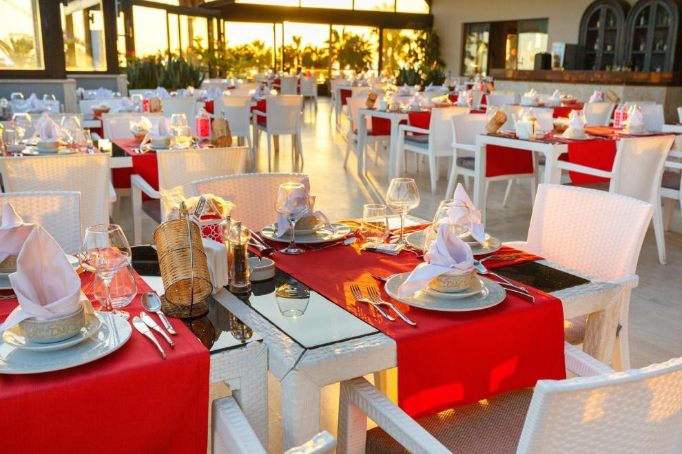 На разположение на гостите са основен ресторант и три а`ла карт ресторанта: турски, италиански, рибен. Освежаващи напитки и закуски се поднасят в 5 бара: бар на плажа, бар при басейна, Rose bar, диско бар, сладкарница Bon Bon.