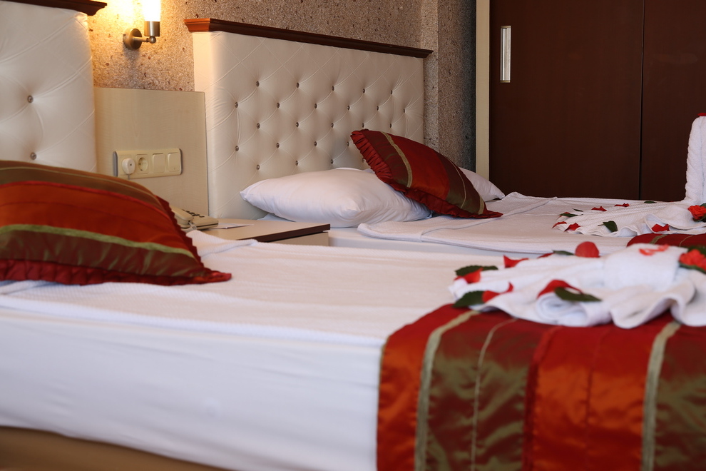 Хотелът се състои от една 5-етажна сграда (2 асансьора), в която са разпределени 130 климатизирани стаи. Те са оборудвани с телефон (платено), телевизор, минибар, електрическа кана, сейф (платено), самостоятелна баня с душ, сешоар, балкон, Wi-Fi (платено). Стаите се почистват всеки ден, спалното бельо се сменя един път седмично.