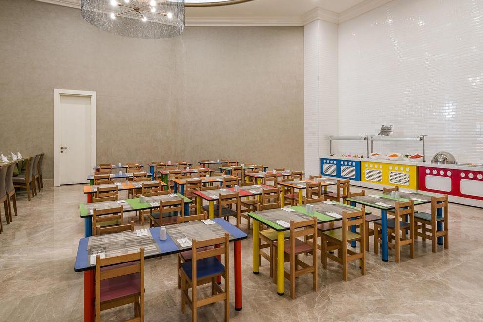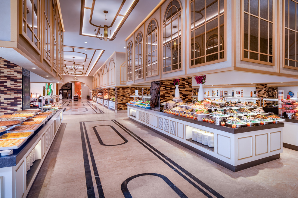 На разположение на гостите са основен ресторант La Gare и ресторант на плажа. 4 а`ла карт ресторанта: турски Sofra ресторант (срещу допълнително заплащане), азиатски Shuang ресторант (срещу допълнително заплащане), италиански Statione (срещу допълнително заплащане и предварителна резервация), средиземноморски White Hill (срещу допълнително заплащане и предварителна резервация). Разнообразни напитки се поднасят в 6 бара, има още снек-бар, сладкарница, която работи денонощно и нощен клуб.
