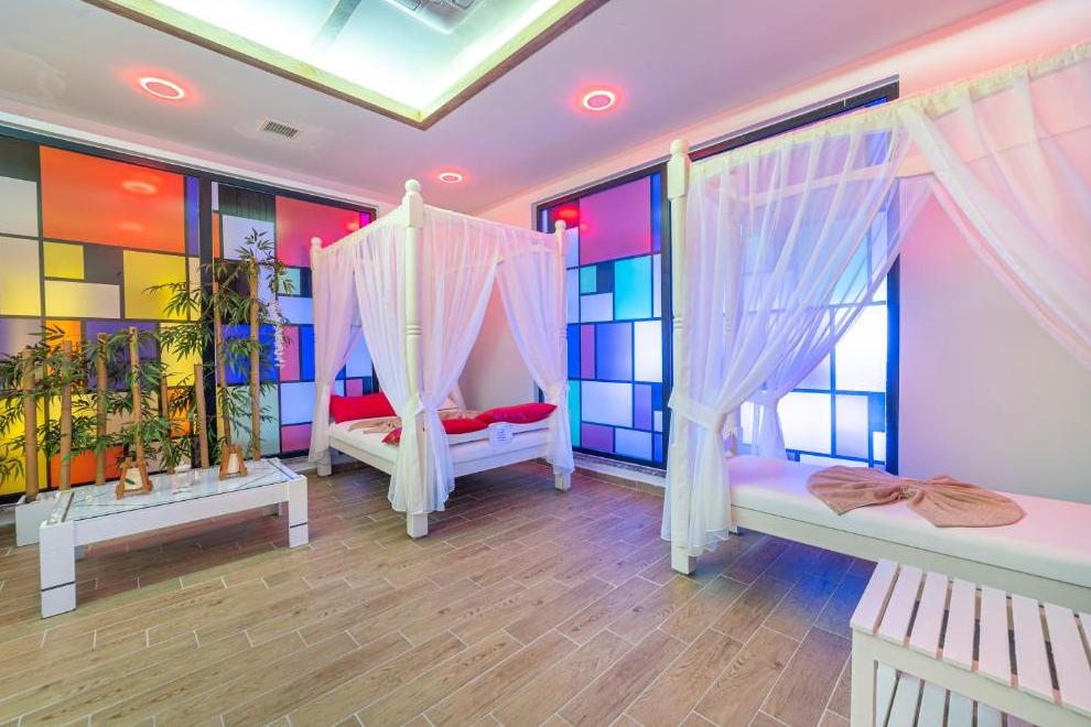 Хотелът предлага дискотека, открит басейн, аквапарк, SPA център със закрит басейн, турска баня, сауна и джакузи, магазини.