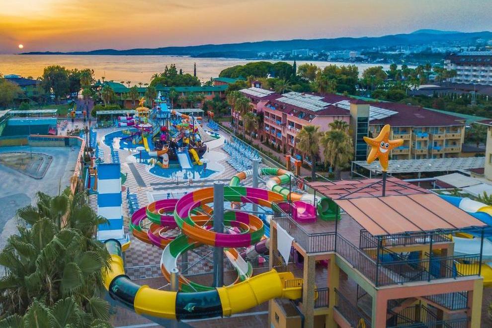 Хотелът се намира на 240 м собствен пясъчен плаж, дълъг 300 м. Предлага възможности за отдих на 2 плувни външни плувни басейна за възрастни, 2 външни детски басейна, 1 вътрешен басейн, водни пързалки, Чадъри, шезлонги и матраци при басейна и на плажа се ползват безплатно.