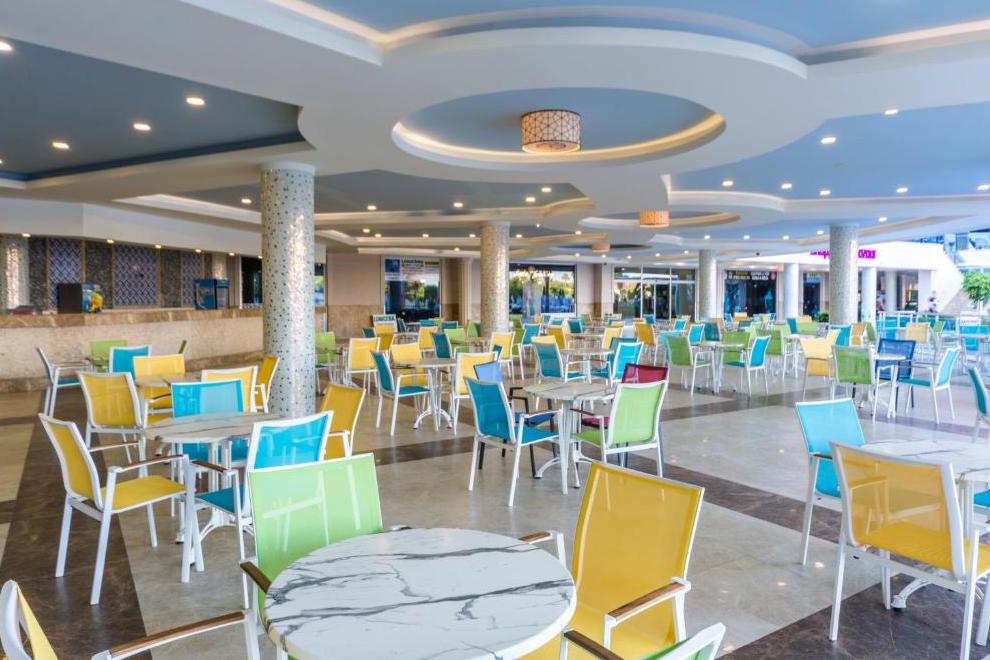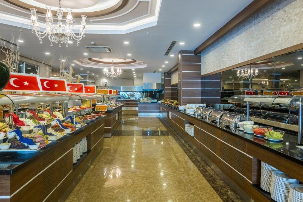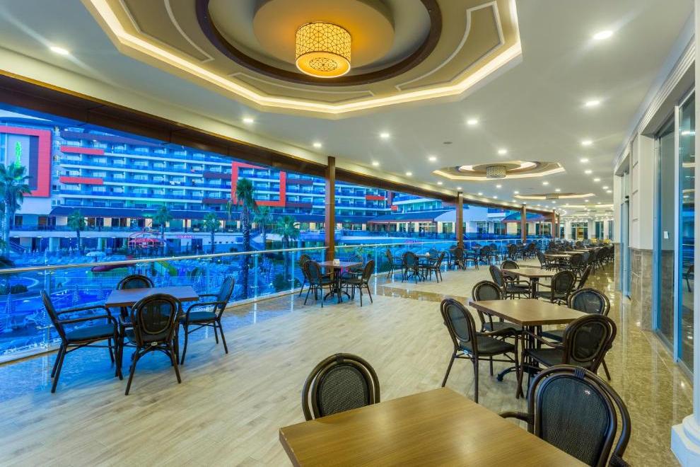 На разположение на гостите са 2 основни ресторанта, разполагащи с градини - ресторант Lotus - за 1000 души, Панорамен ресторант - за 500 души, детски бюфет (за деца над 3 г.; детско меню), диетични ястия, тематични вечери. 2 а`ла карт ресторанта: турски и рибен (срещу предварителна резервация и срещу допълнително заплащане). Има още гьозлеме, фаст фуд, сладкарница, 2 снек бара, кафене, сладкарница. Разнообразни напитки се предлагат в плодов бар, лоби бар, TV бар, бар „Waterfall“, бар „Olympic“, бар „Panoroma“, аква бар, зообар, пъб и Диско бар - 00:00 ч.-02:00 ч. (вход за дискотеката се заплаща; напитките са безплатни).
