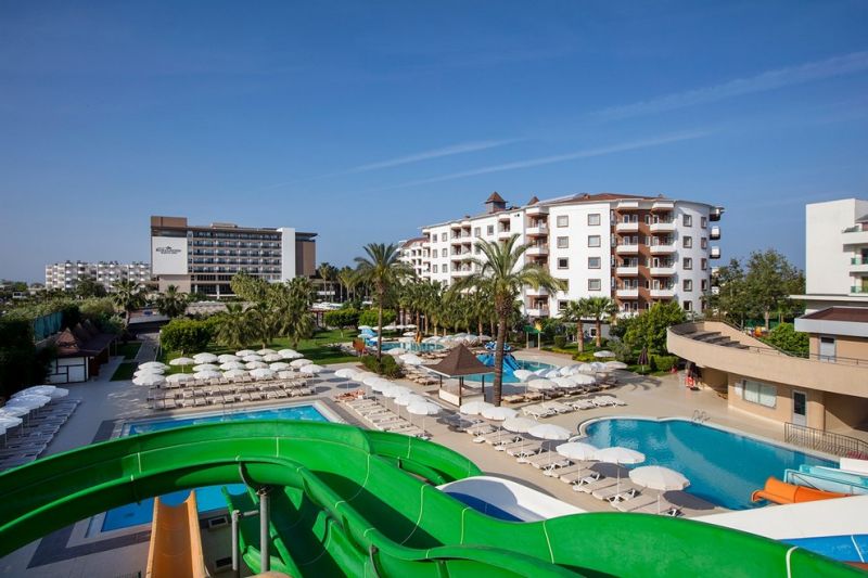 Хотелът разполага със собствен пясъчно-чакълест плаж, 7 басейна, сред които 2 основни басейна, 4 басейна с пързалки за малки и големи и отделен детски басейн. Бар на плажа. Чадъри и шезлонги се ползват безплатно, плажни кърпи - безплатно (1 път на ден).