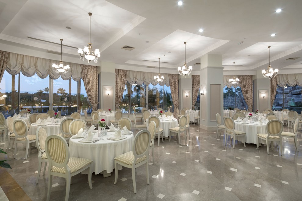 Хотелът разполага с основен ресторант, 2 а`ла карт ресторанта (италиански, турски, с предварително записване, 1 безплатно посещение по време на престоя), 5 бара, диетично меню, вегетарианско меню.