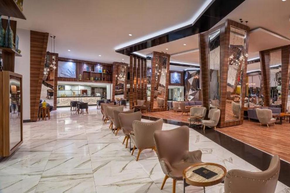 Хотелът се състои от една 6-етажна сграда, разположена между палмови дръвчета и цветни градини, в която са разпределени 447 климатизирани стаи, от които:
