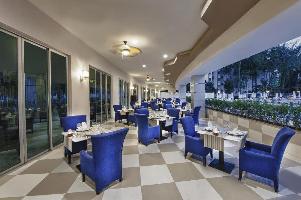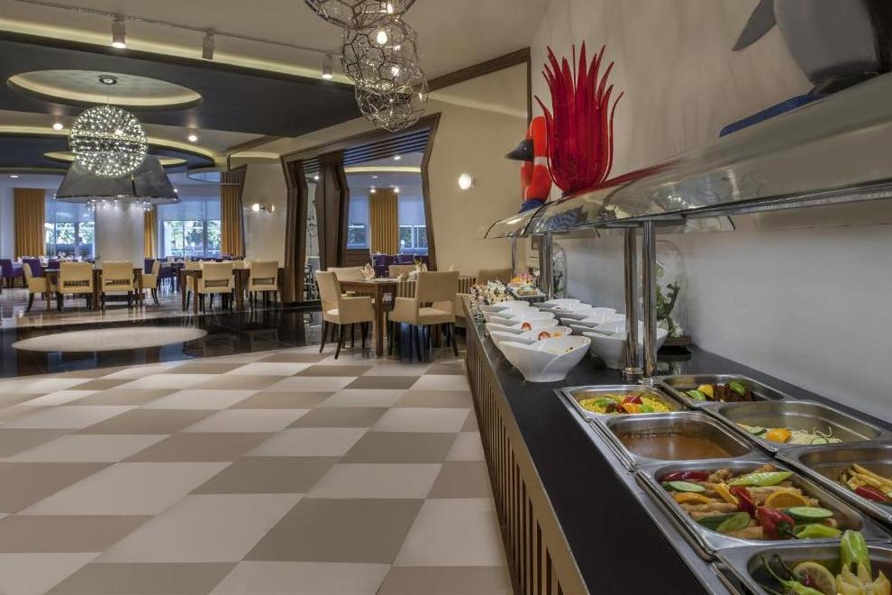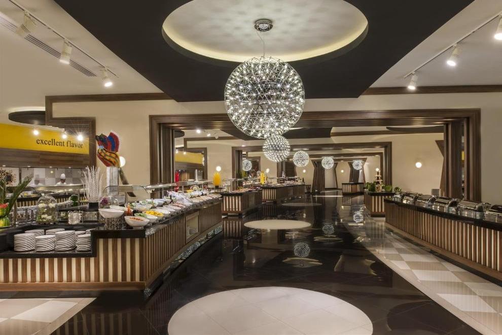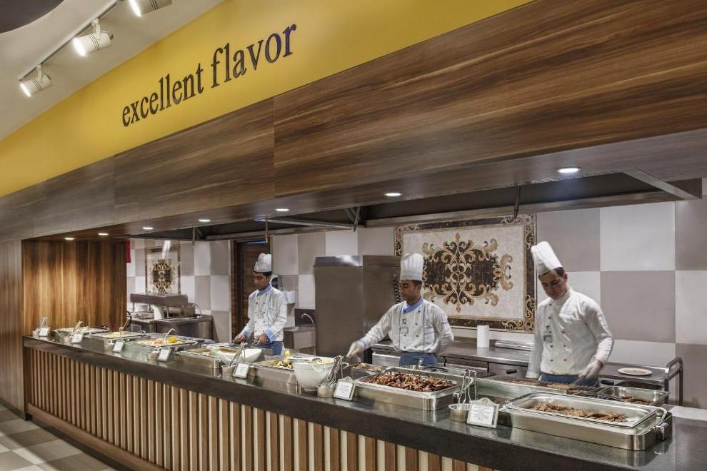Основният ресторант сервира отбрани ястия от интернационалната кухня за закуска, обяд и вечеря, поднесени на блок маса. В a`ла карт ресторанта можете да се насладите на блюда от мексиканската, италианската, гръцката, френската и далекоизточната кухня. Баровете предлагат разнообразие от алкохолни и безалкохолни напитки. Хотелът функционира на база All Inclusive.