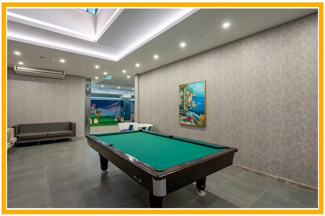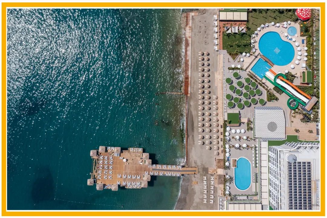 Два външни басейна, вътрешен басейн, водни пързалки, детски басейн. Анимация, водни спортове, билярд, тенис на маса, детски клуб. СПА център, фитнес.