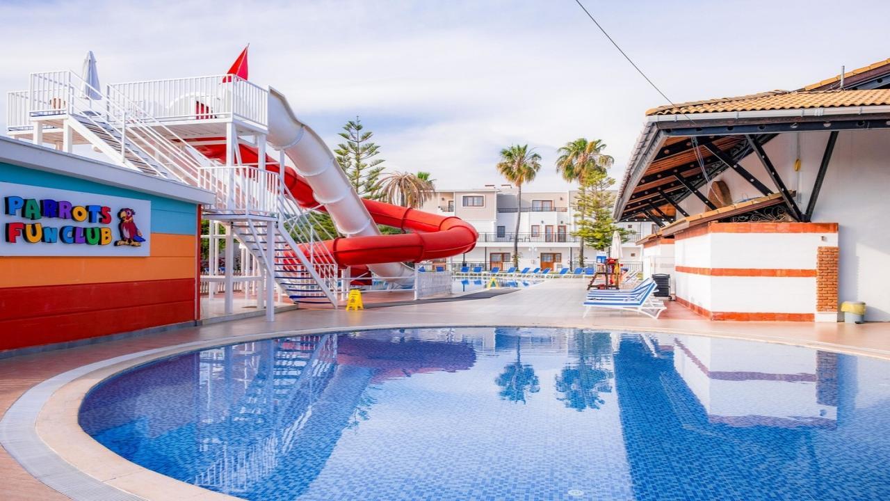 Богат набор удобства: плаж, басейни, пързалки, All Inclusive, активности.