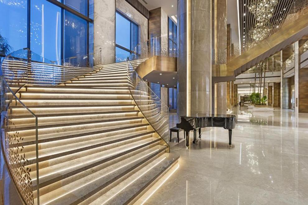 Хотелът се състои от основна 8-етажна сграда (8 асансьора) и вили, в които са разпределени 600 климатизирани стаи. Стаите в основната сграда са с гледка море, голф игрище или градина. Има също стаи Lagoon и Вили. Всяка стая обзавдена с комфортни легла и матраци, сателитна телевизия, телефон, минибар, сет за кафе и чай, сейф, баня с душ, премиум козметика Etro/ Bvlgari, козметично огледало, халат и чехли за СПА, сешоар, балкон, Wi-Fi, меню с избор на възглавници, дигитален ключ за осветление.
