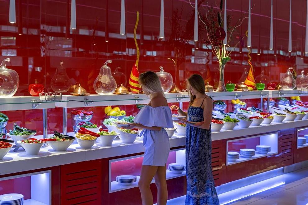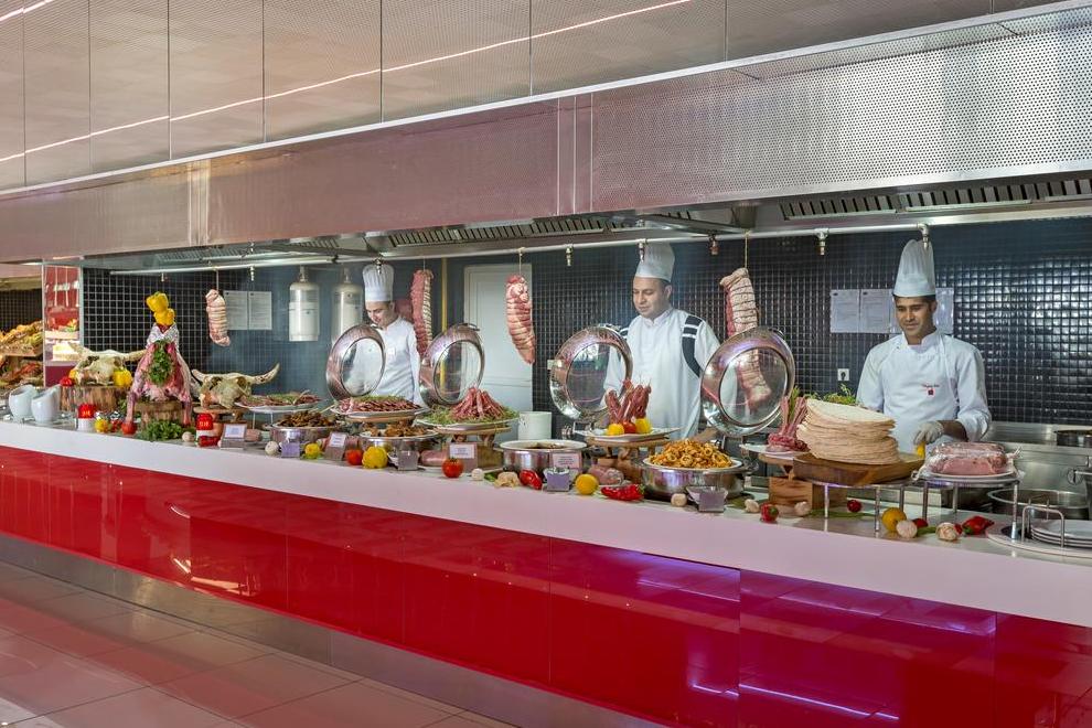 На разположение на гостите са основен ресторант и 7 а`ла карт ресторанта: рибен, турски, италиански, афродизиак ресторант, ресторант ‘’на сляпо’’ суши, барбекю (с предварителна резервация и срещу заплащане). Снек ресторант, бистро и сладкарница. Разнооразни напитки се предлагат в 6 бара.
