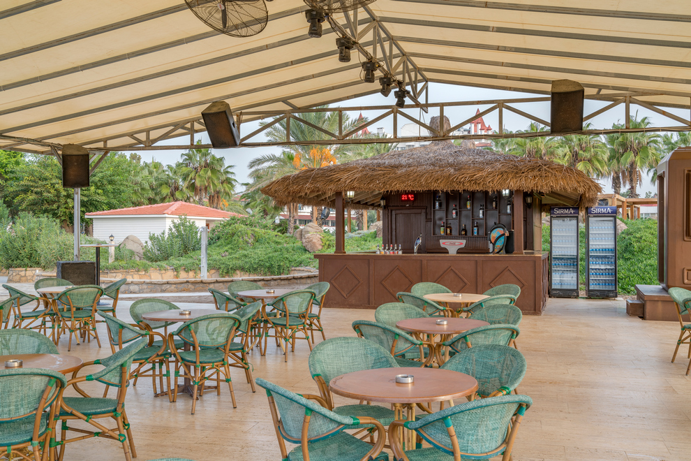 На разположение на гостите са основен ресторант и а`ла карт ресторант. Освежаващи напитки и закуски се поднасят в 6 бара: Green Bar (лоби), бар при басейна, бар на плажа, диско бар, снек бар, Aqua Bar.