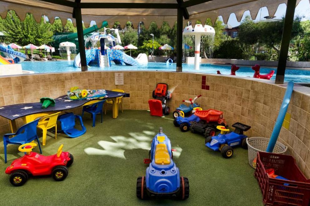Посетителите могат да се поглезят със сауна, турска баня, парна баня, а за спортните натури или тези, които искат да влязат във форма има фитнес зала, аеробика, водна гимнастика, волейбол на плажа, боча, баскетбол, тенис на маса, мини - футбол, стрелба с лък, стрелба с въздушна пушка, дартс, тенис на корт, безмоторни водни видове спорт. Анимационни програми, музика на живо, дискотека (Gloria Serenity Resort). Срещу заплащане - масаж, уроци по тенис, наем на ракети и топки за тенис, осветление на тенис корта, билярд, видеоигри, боулинг (4 пътеки), индивидуални уроци по голф, мини - голф, моторни водни видове спорт, водни видове спорт, уиндсърф (с лиценз). За децата - детски басейн, закрит басейн, мини-клуб (от 4 до 12 год.), мини-кинотеатър, детска площадка. В хотелски комплекс Gloria Verde са осигурени специален детски ресторант и детска площадка, а за вдъхновението на децата се организират творчески дейности като оригами, занаятчийски работилници и игри с пъзели. При заявка и срещу допълнително заплащане се предлагат детегледачески услуги и бебешки колички. Безплатно се осигуряват още бебешки креватчета, бебешки вани и високи столчета за хранене. Удобствата за бебета включват нагревател за шишета и блендер, които улесняват приготвянето на храната.