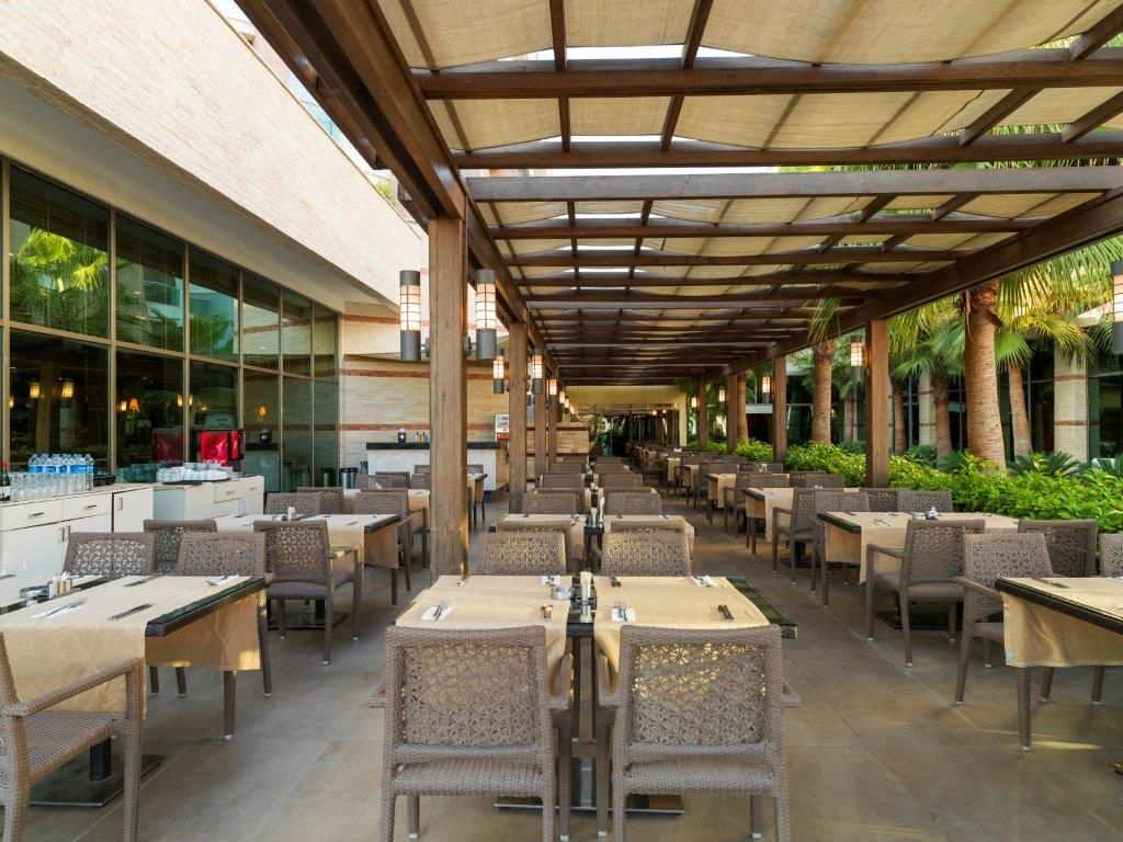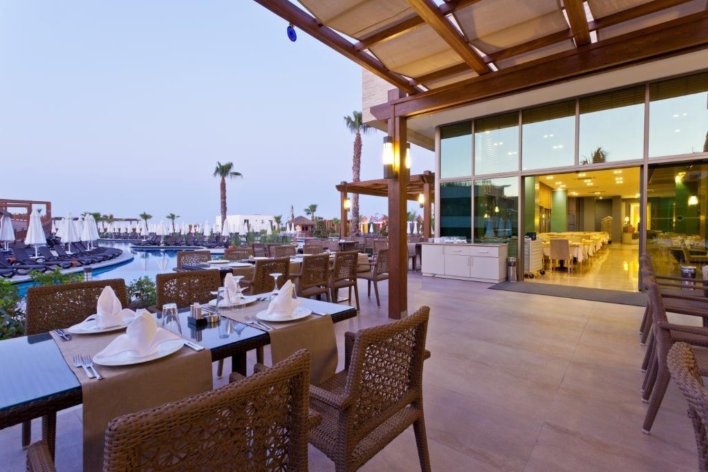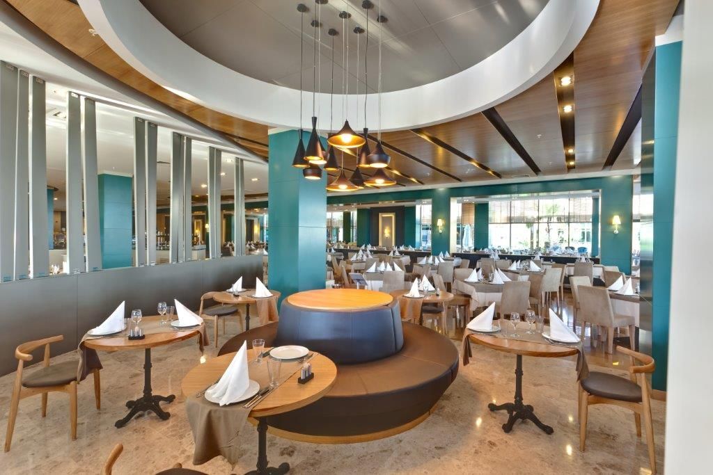 Основен ресторант на All Inclusive база от 07:00 до 0:00 часа. 3 а-ла-карт ресторанта - италиански, турски и рибен, 2 снек ресторанта, сладкарница, 5 бара.