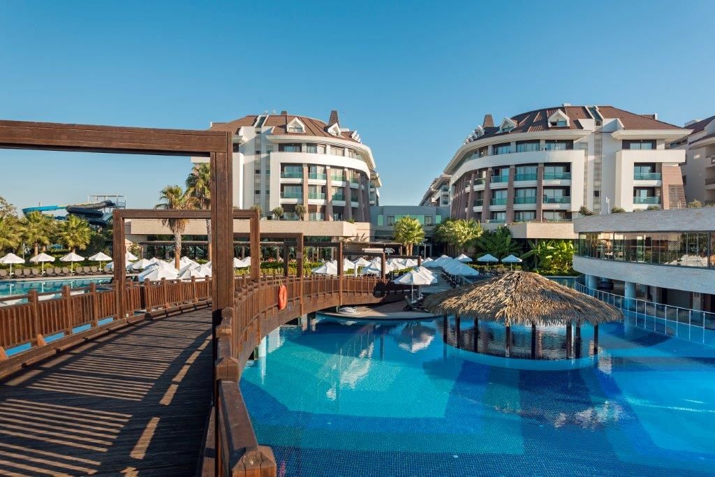 Sherwood Dreams Resort Hotel се намира на 1 км от Bogazkent, 5 км от Белек, на 9 км от Serik, на 40 км от летище Анталия. Разположен е на брега на морето, със собствен плаж - пасък и камъчета. Безплатни чадъри и шезлонги на плажа и на басейните.