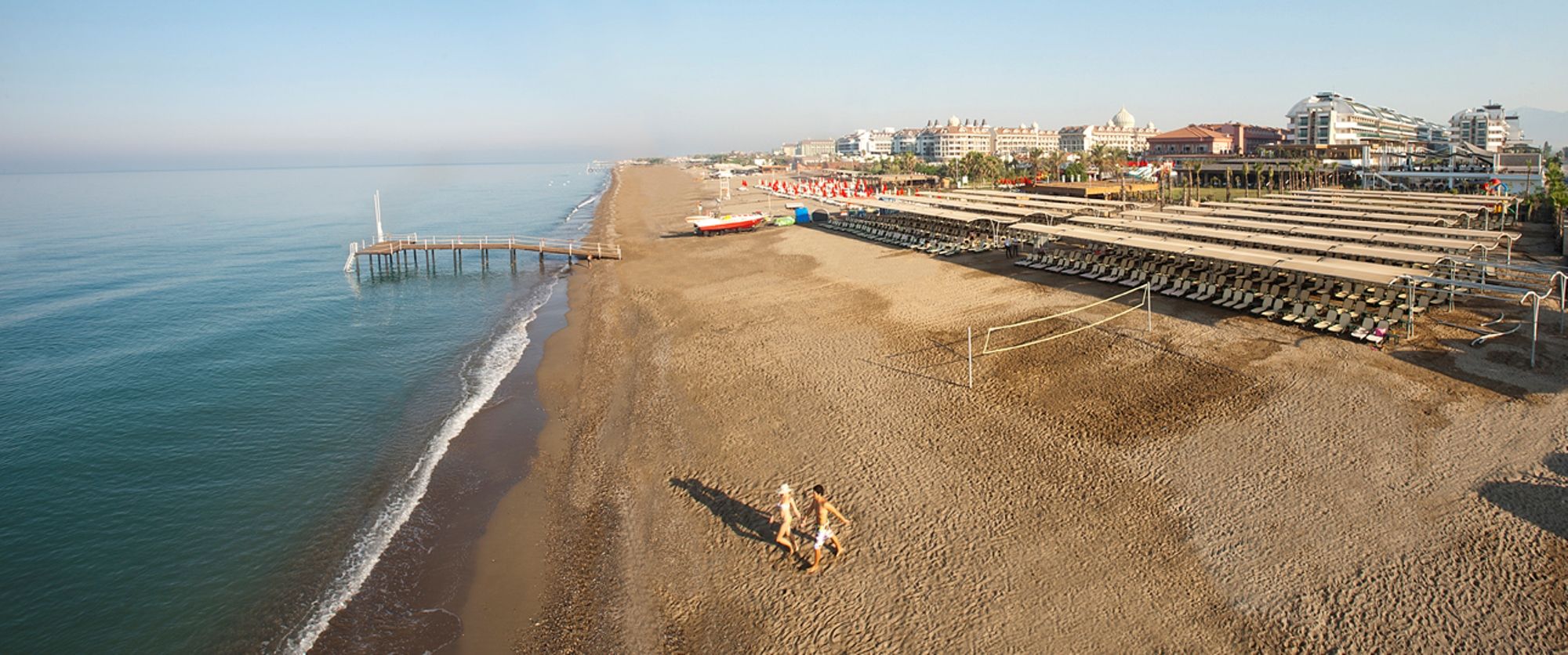 Петзвездният хотел разполага със собствен плаж, а използването на чадър и плажни хавлии е безплатно за гостите на хотела.
