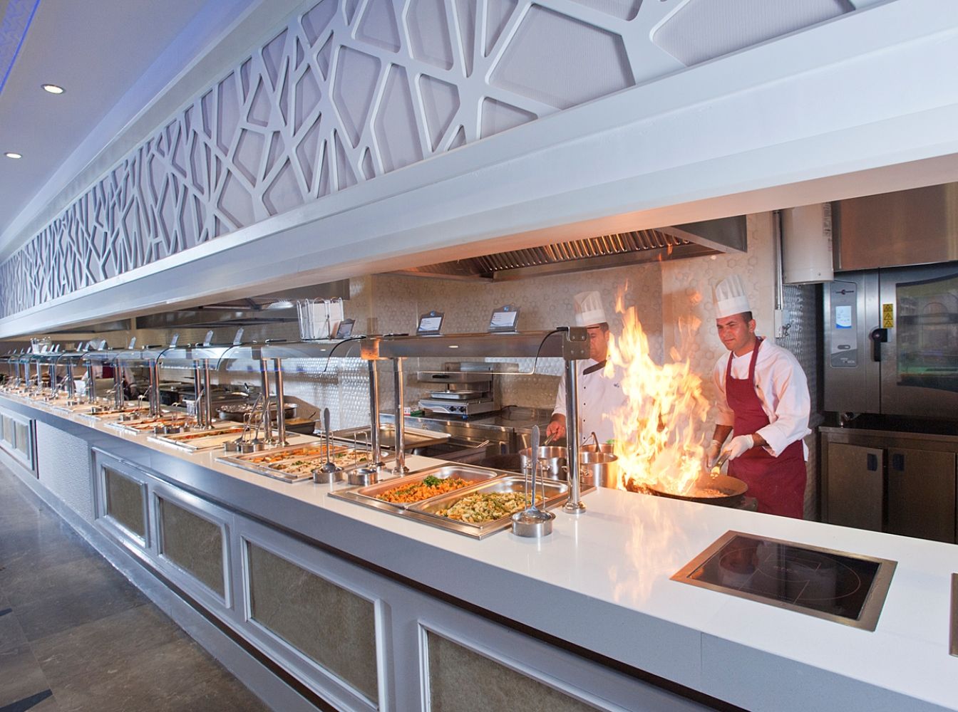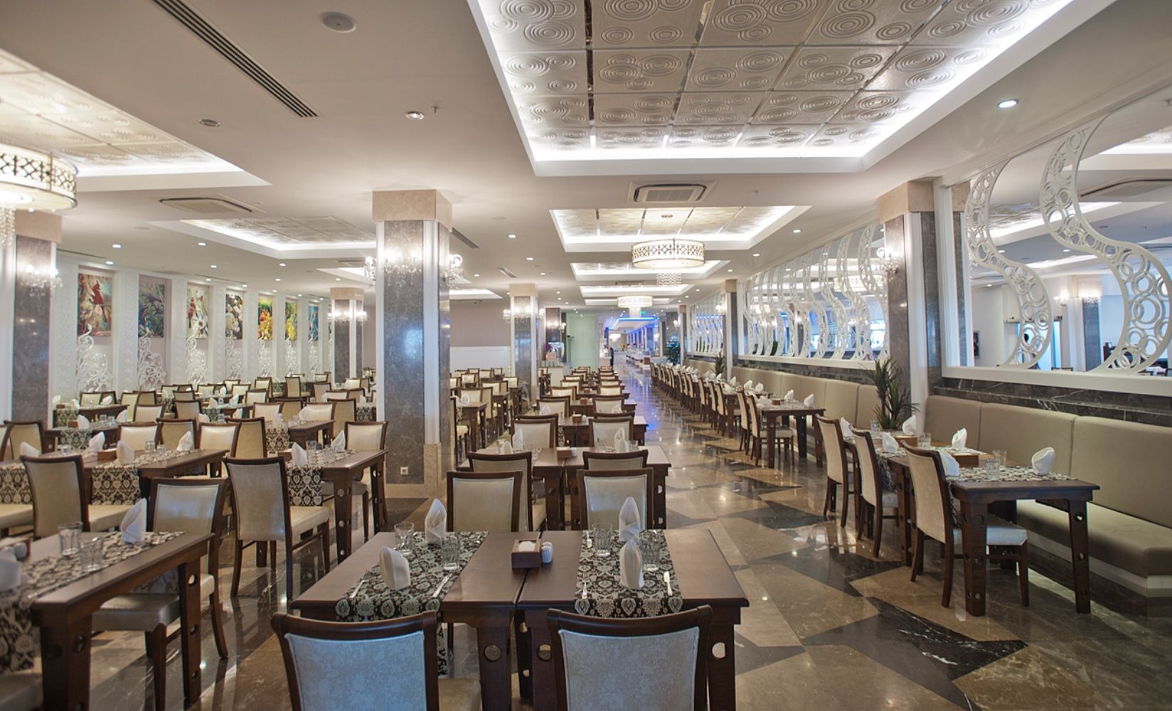 Хотелският комплекс има 5 ресторанта, от които италиански и турски. Част от заведенията са и няколко бара - витаминен бар, бар край басейна, градински бар, плажен бар, и други.