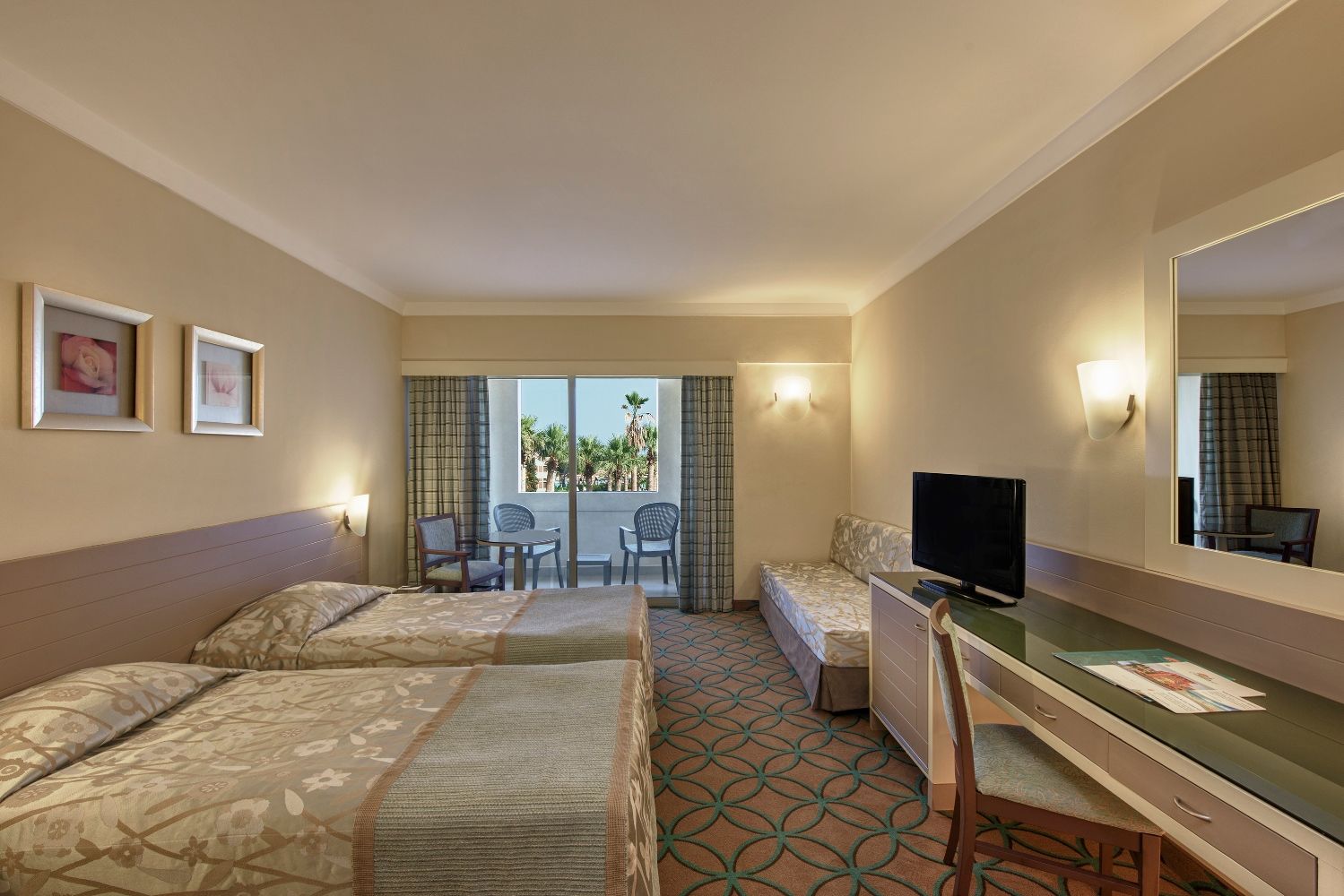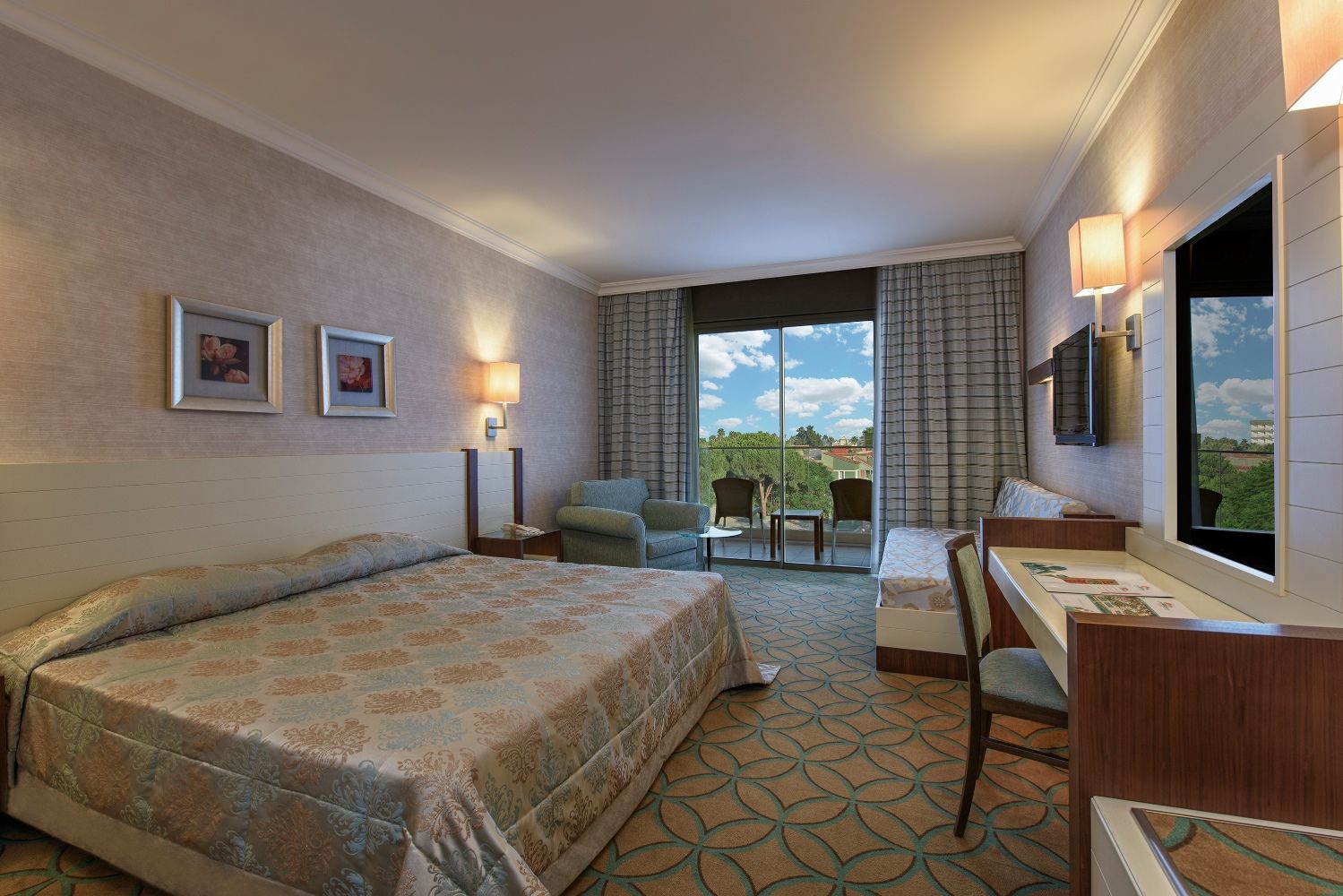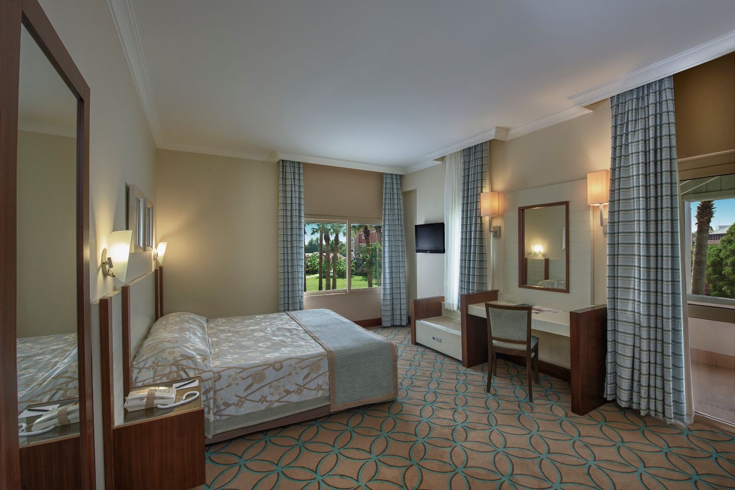 Хотелът разполага със стандартни, семейни, суити и джакузи стаи. Всяка стандартна стая разполага с телевизор, мини бар, сейф и балкон и с гледка към градината.