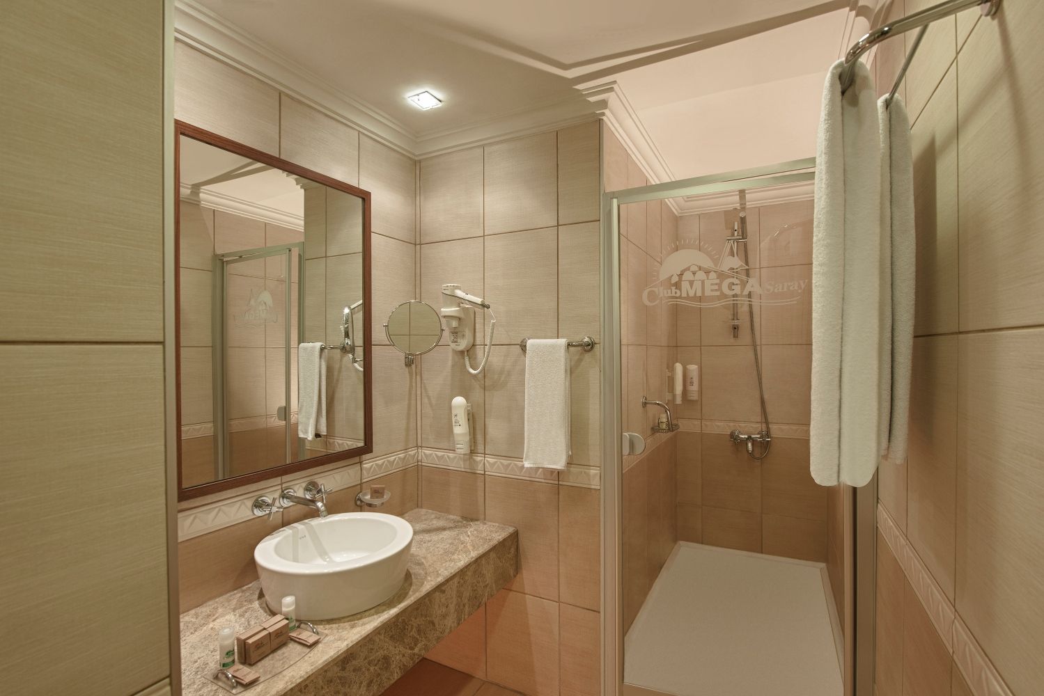 Club Mega Saray Hotel се намира на 29 км от летището, на 35 км от Анталия, в района богат на културни и природни забележителности.