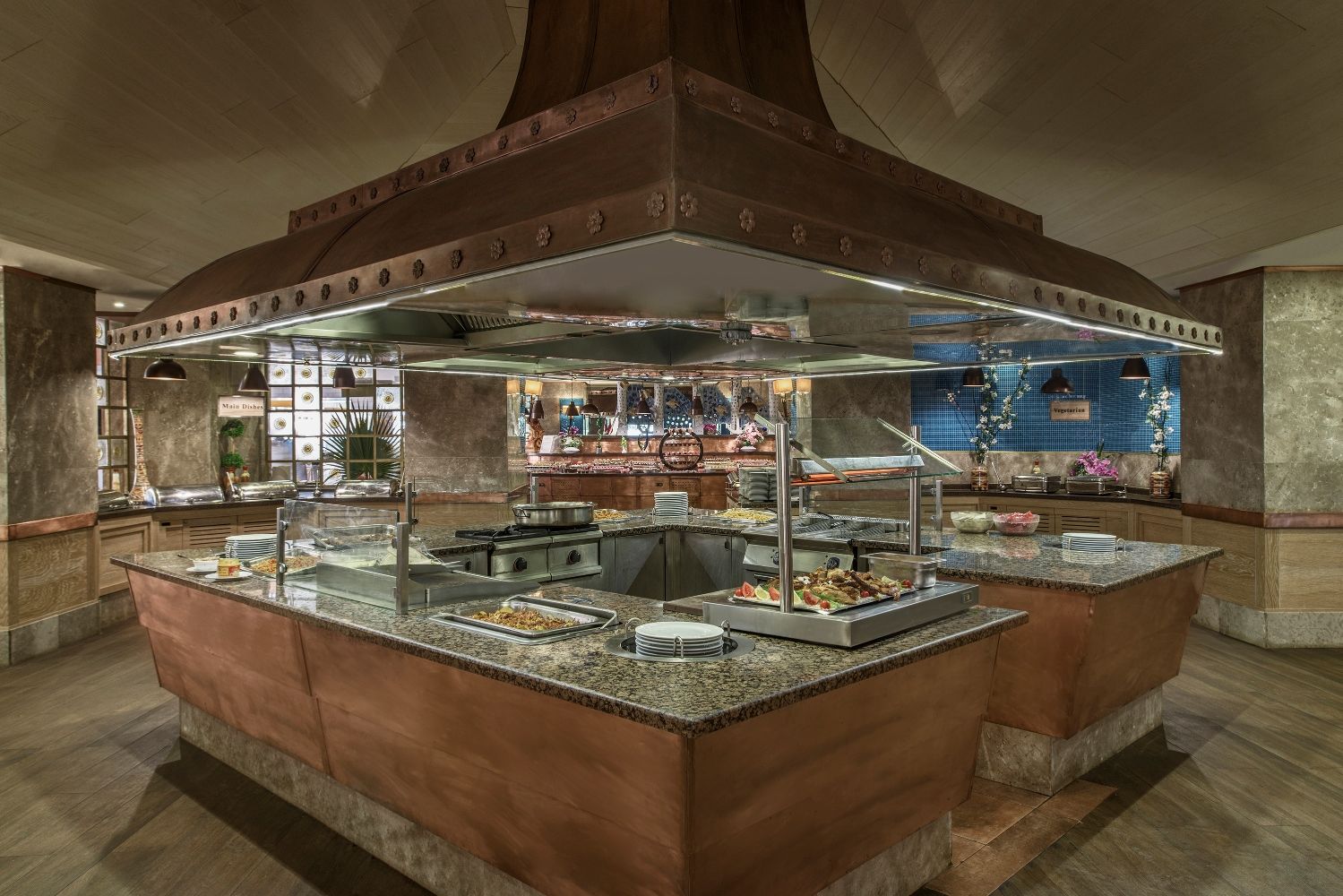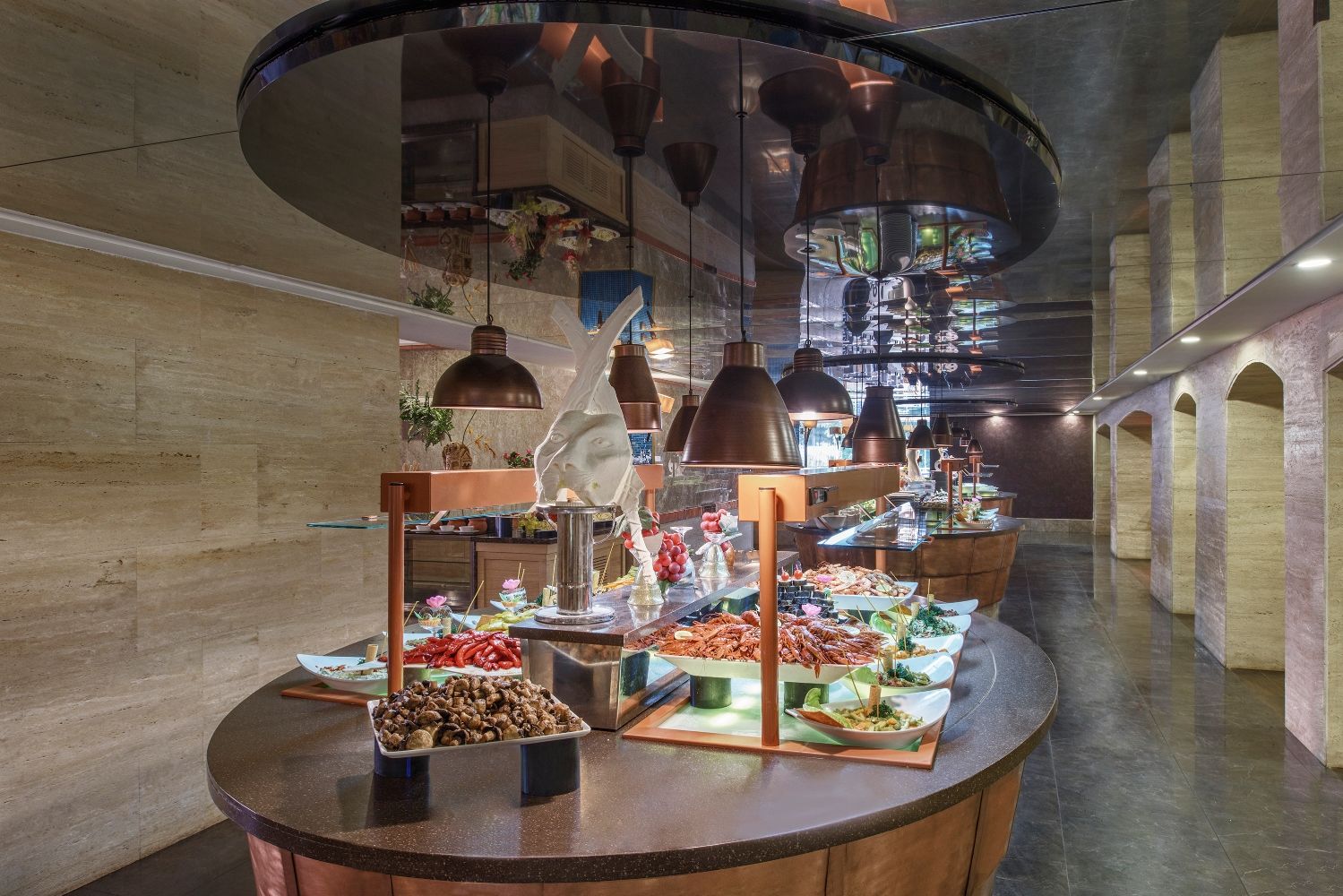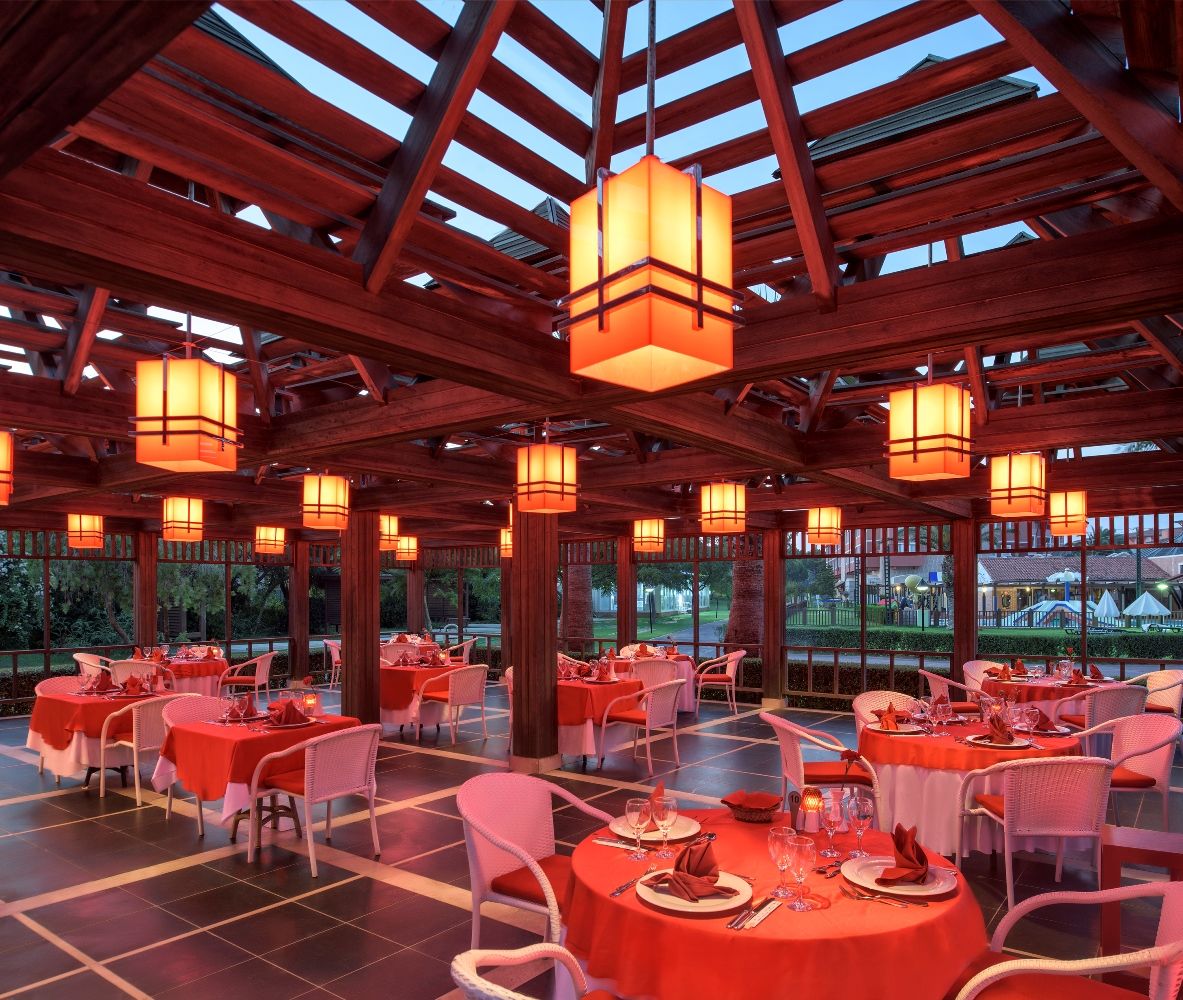 Основен ресторант на All Inclusive база. 6 а-ла-карт ресторанта - турски, италиански, китайски, барбекю, рибен, мексикански, детски ресторант, 9 бара.