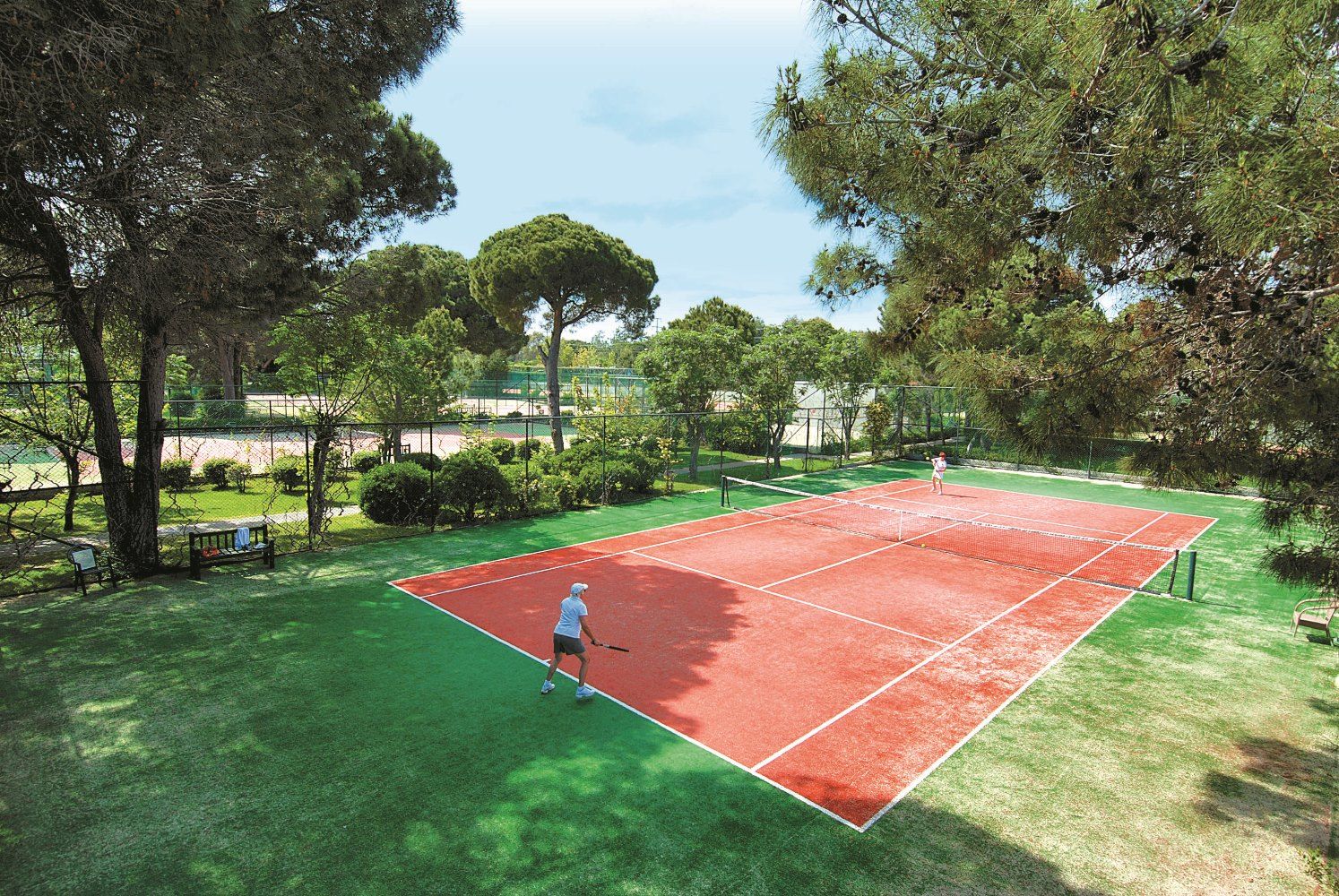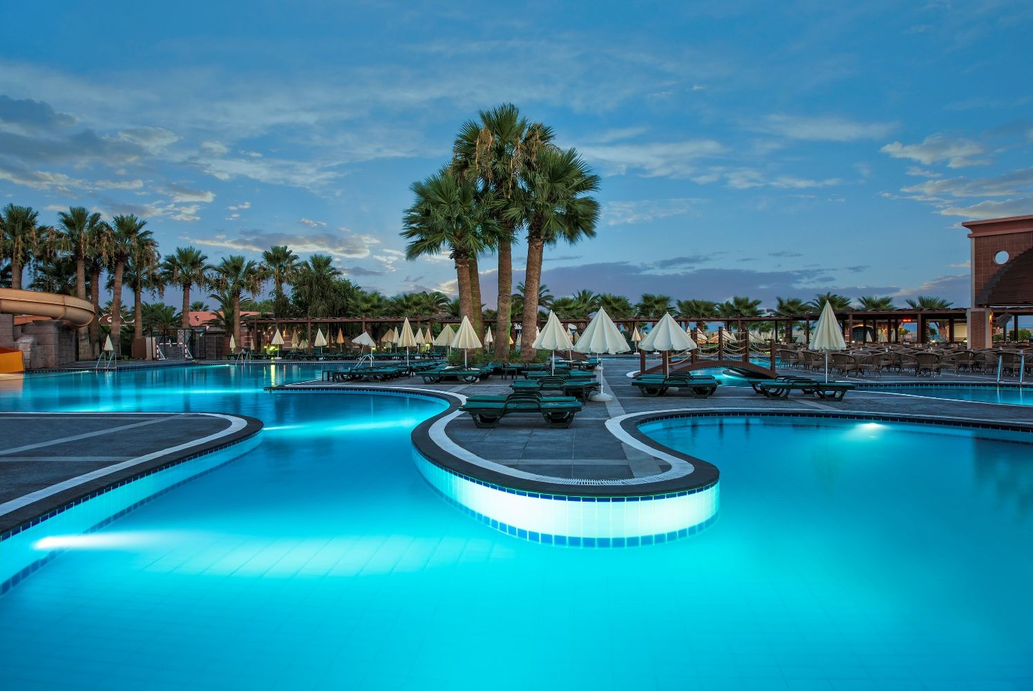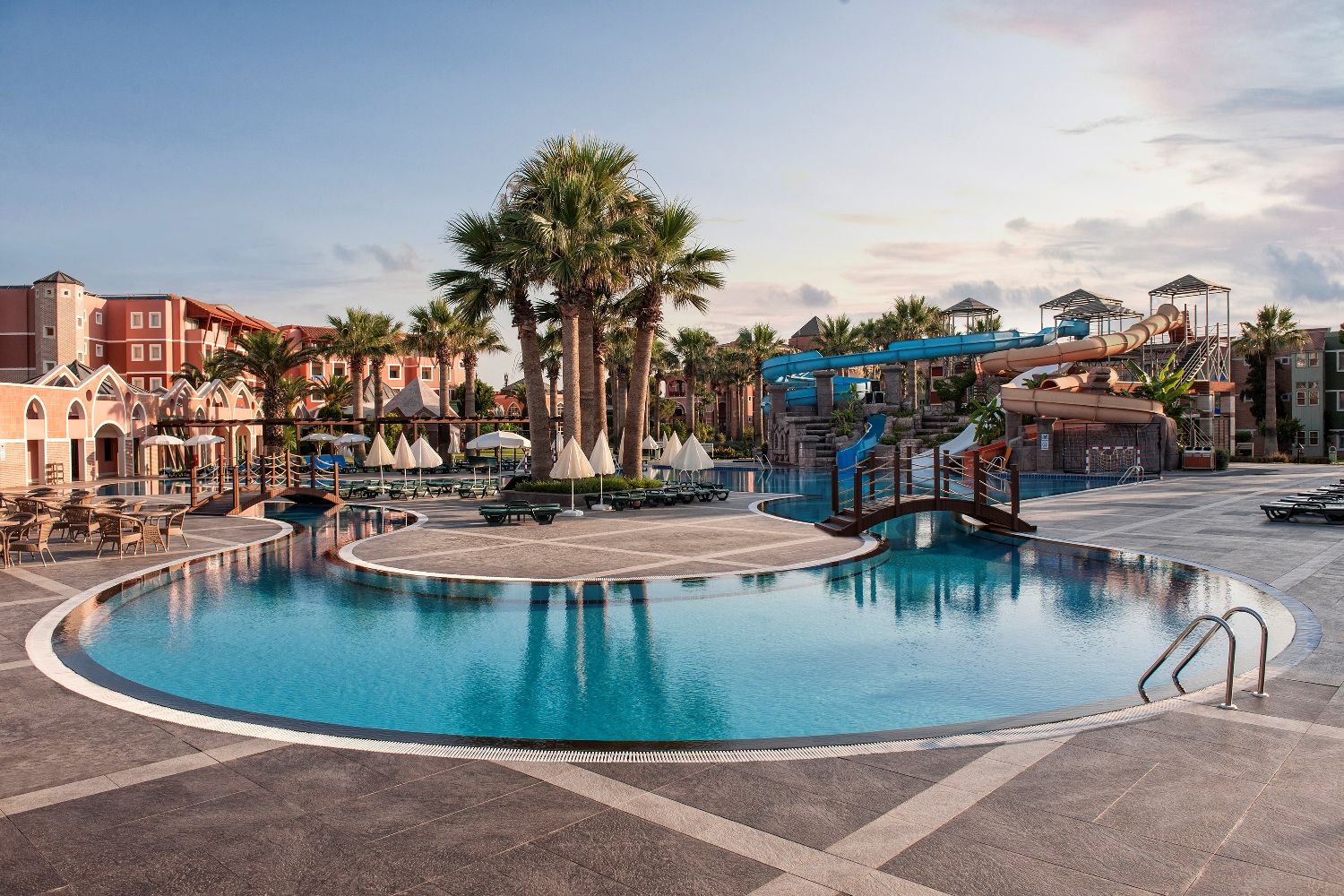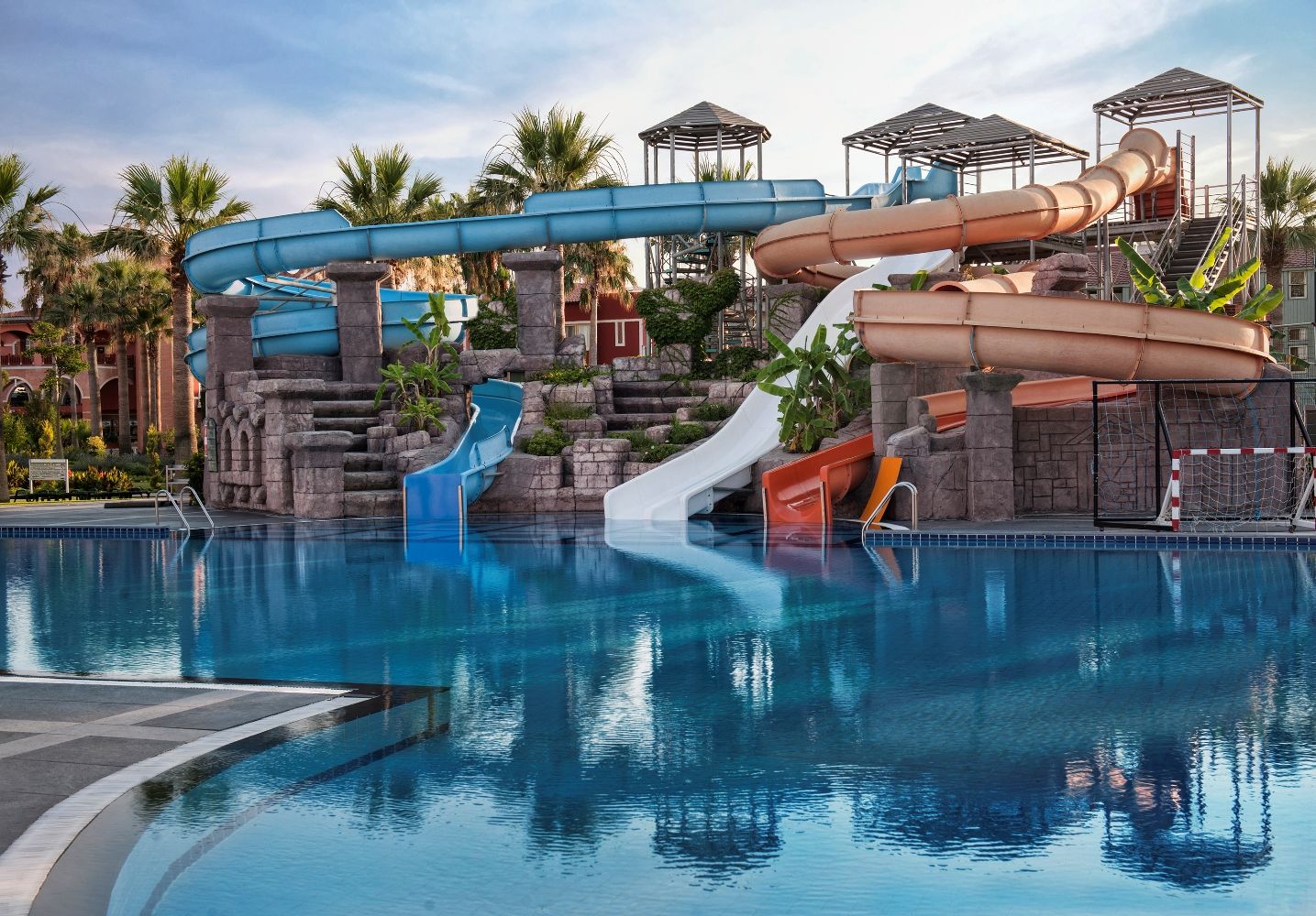 СпортГлавен басейн с водни пързалки, релакс басейн, вътрешен басейн и детски с безплатно ползване на шезлонги, матраци и чадъри. Водни спортове, тенис на маса, степ аеробика, тае бо, плажен волейбол, баскетбол, мини футбол, бадминтон, спортни състезания.