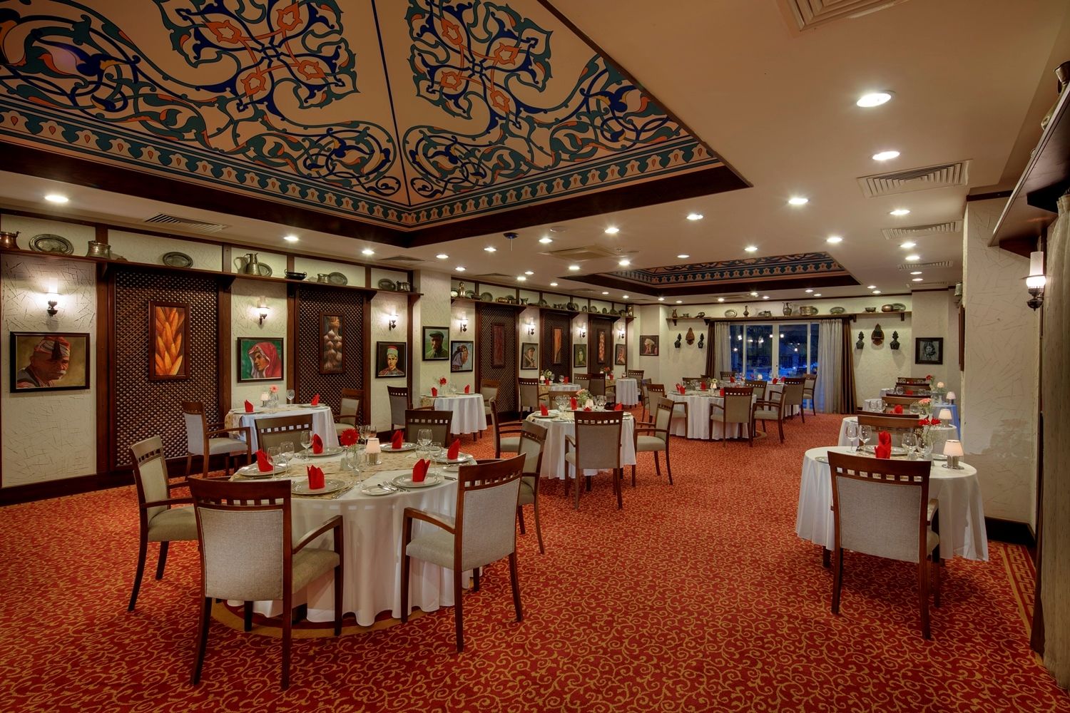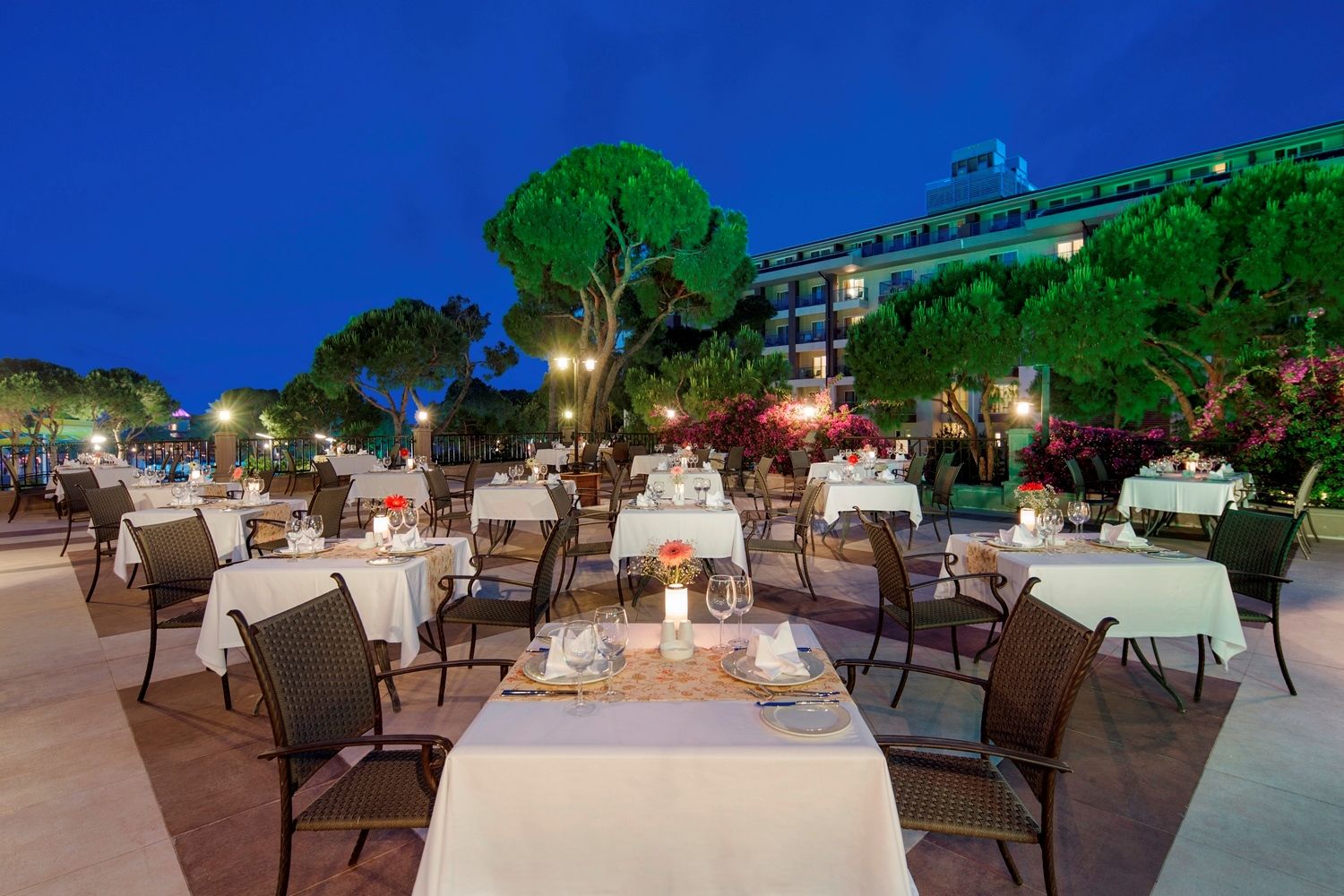 Настаняване на High Class All Inclusive на отворен бюфет в основен ресторант на хотела с вътрешна и външна част. 3 а-ла-карт ресторанта: средиземноморски, източен и мексикански. Снек бар и 3 бара.