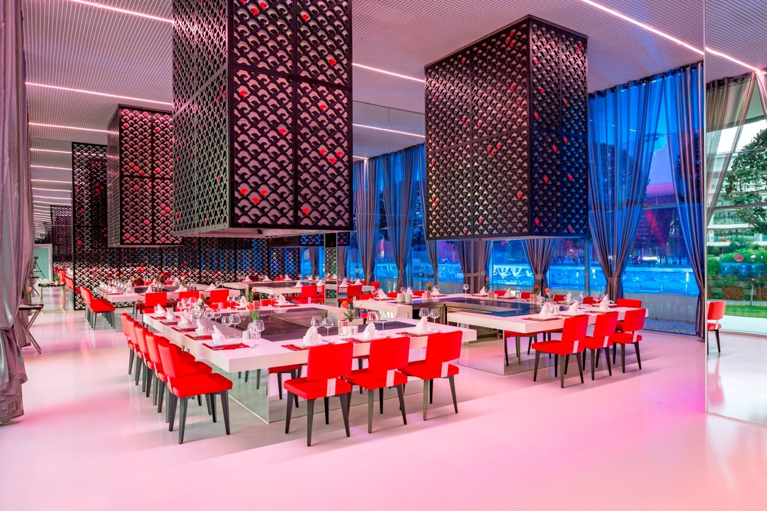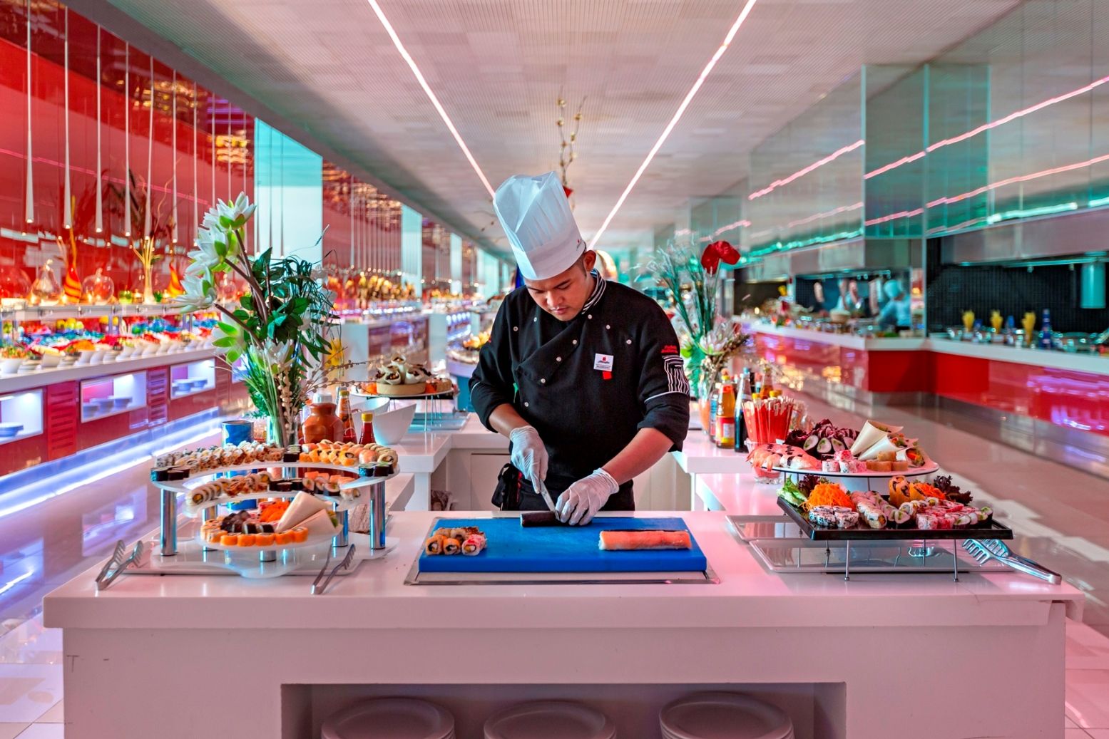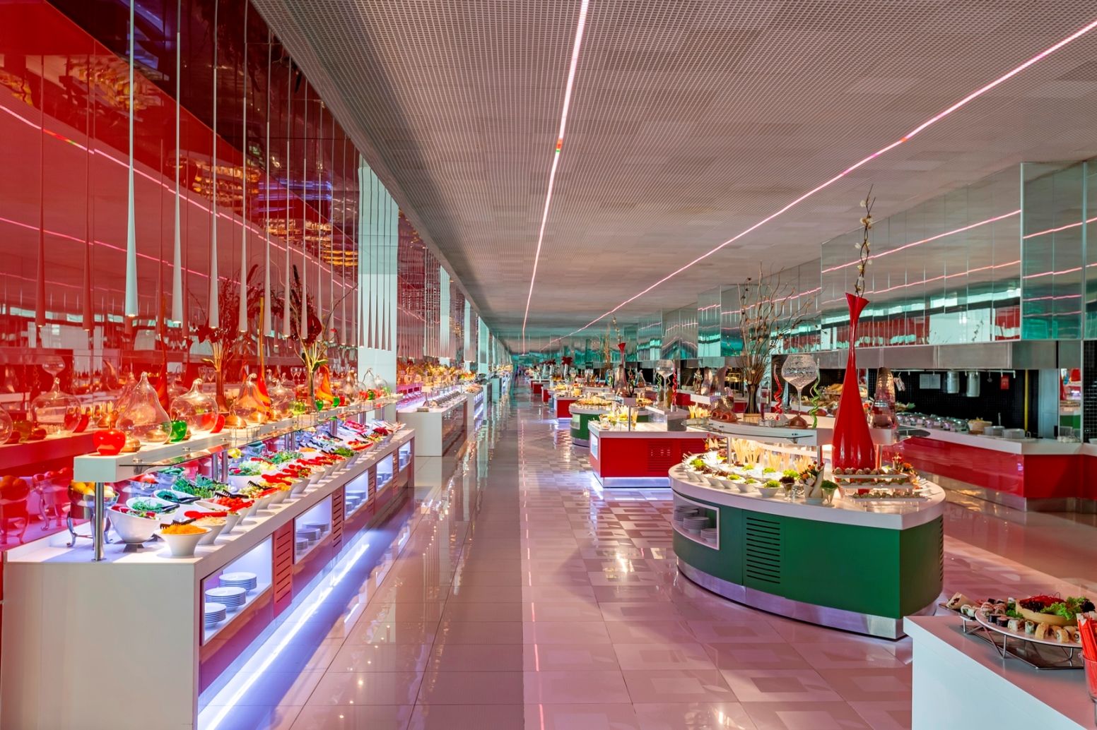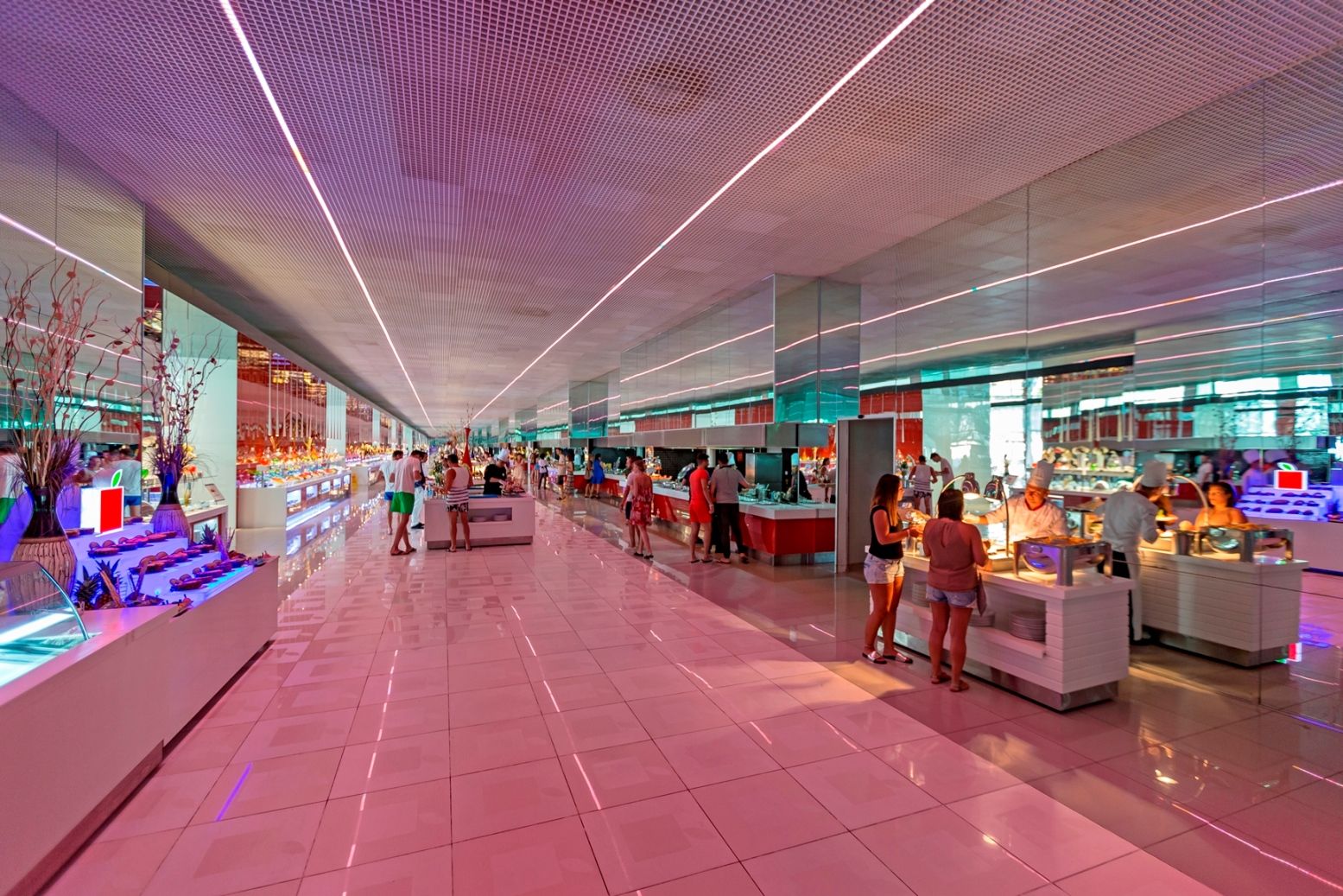 Основен ресторант на Ultra All Inclusive база, 7 а-ла-карт ресторанта - морски, мексикански, турски, италиански, стек, суши, вечеря на тъмно, бистро, сладкарница, 7 бара.