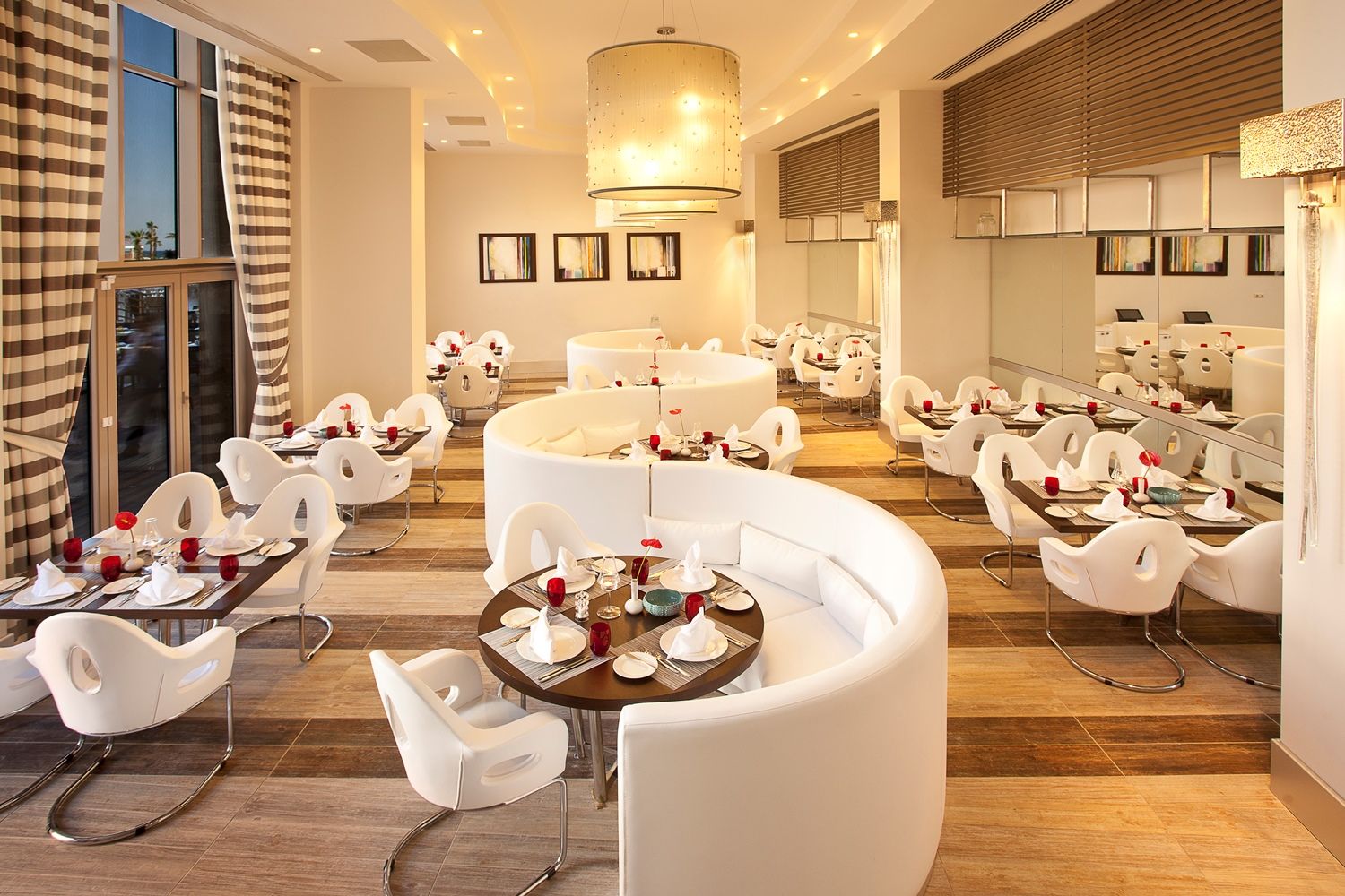 Настаняване на All Inclusive база на отворен бюфет в основен ресторант на хотела. 5 а-ла-карт ресторанта: азиатски, италиански, ливански, рибен, стейк. Снек бар, сладкарница, 8 бара.
