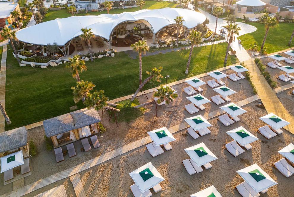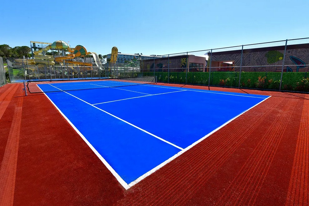 Собствен пясъчен плаж, дълъг 300 м. На разположение на гостите са Main Pool открит басейн отопляем, 2900 кв.м; Main Pool Kids открит басейн отопляем, 50 кв.м; Activity Pool открит басейн без подгряване, 310 кв.м; Santorini Pool открит басейн отопляем, 620 кв.м; Casita Pool открит басейн отопляем, 1400 кв.м; Swim-Up открит басейн отопляем, 2336 кв.м; Indoor Main закрит басейн отопляем, 284 кв.м; Indoor Kids закрит басейн отопляем, 25 кв.м. Aquapark за възрастни (8 пързалки) 200 кв.м. Aquapark детски (7 пързалки), отопляем 1045 кв.м. Аквапарк за деца (7 пързалки), отопляем, 1045 кв.м., работно време 10:00-12:00/14:00'-17:00 .