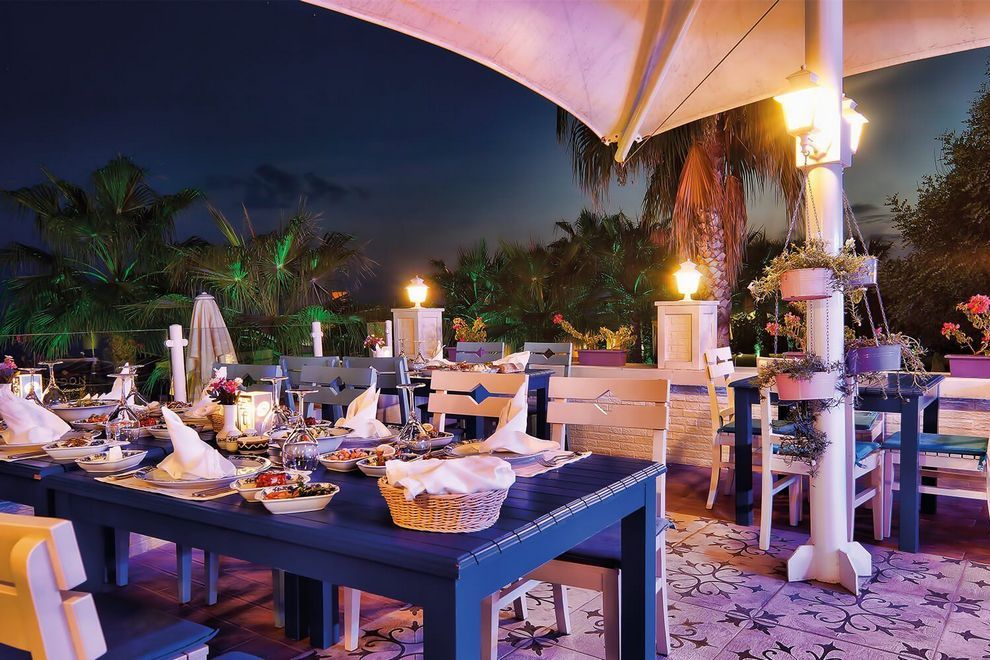 На разположение на гостите са основен ресторант (диетично меню) и 6 а`ла карт ресторанта: италиански, турски, азиатски, мексикански, индийски и рибен (срещу заплащане, с предварителна резервация, съгласно концепцията на хотела). Разнообразни напитки и закуски с предлагат в 6 бара и Снек бар. Допълнителни услуги като а`ла карт ресторант за романтична вечеря или наемане на павилион за малко уединеност на плажа.