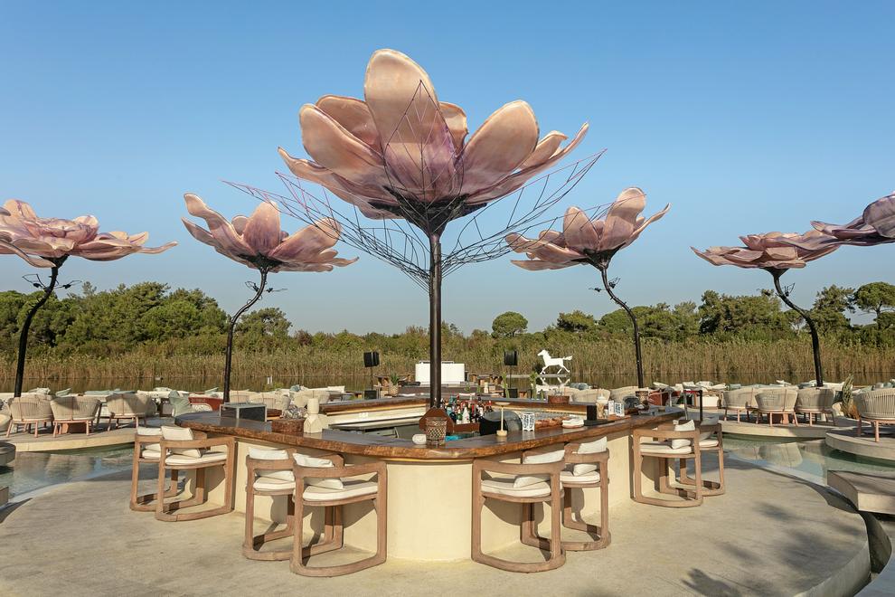Собствен пясъчен плаж с 2 кея - единият за VIP-гости, на 1,2 км от хотела, осигурен е безплатен шатъл. Бар на плажа (безплатно). 4 открити басейна, един от които с морска вода и подгряване през зимния период и 1 с олимпийски размери. 1 закрит басейн и 1 закрит детски басейн. Аквапарк с 4 пързалки за възрастни и 6 за деца. На плажа и при басейните чадъри, шезлонги, матраци и плажни кърпи се ползват безплатно. Шатри на плажа - платено (за гости на Villas - безплатно).