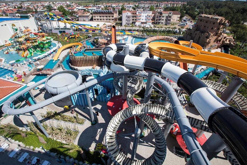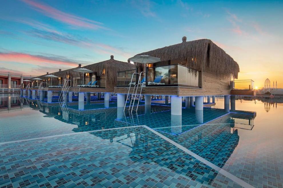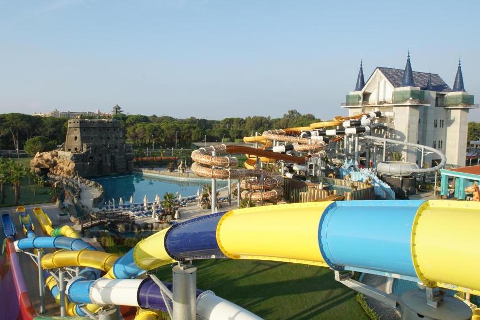 Собствен пясъчен плаж, дълъг 150 м, на 1750 м от хотела, бар на плажа. Осигурен е безплатен шатъл (на всеки 30 минути, от 08.00 до 18.30 часа.). 9 открити басейна (1 с полуолимпийски размери), 2 закрити басейна (с подгряване през зимата), аквапарк. На плажа и при басейните чадъри, шезлонги, матраци и кърпи се ползват безплатно.