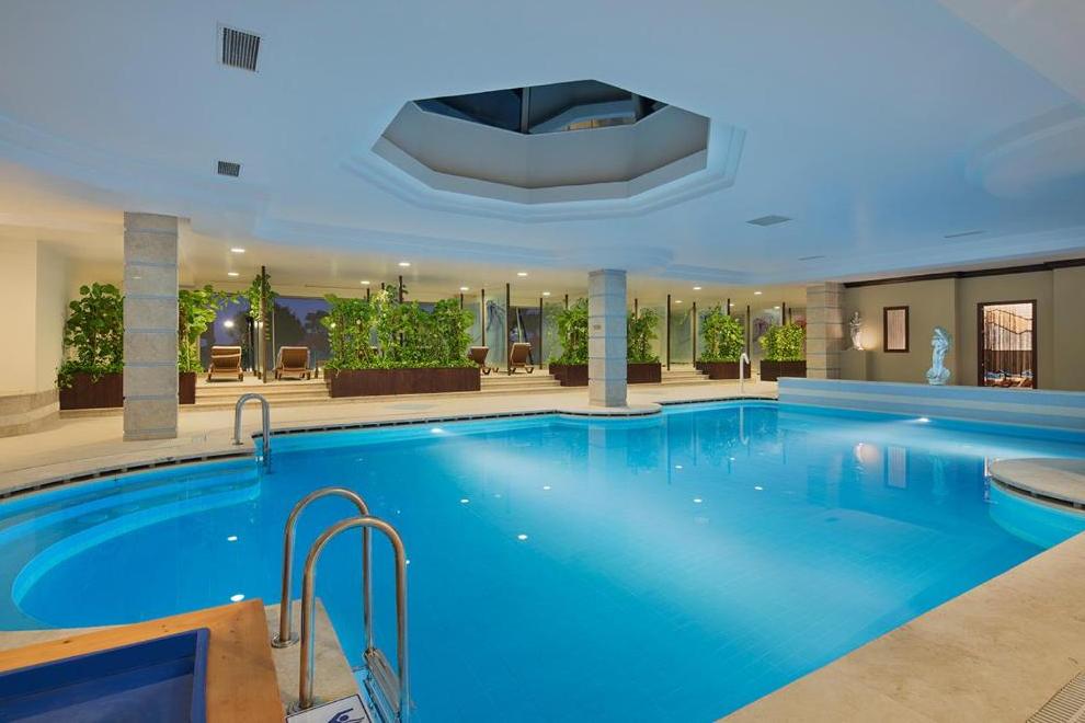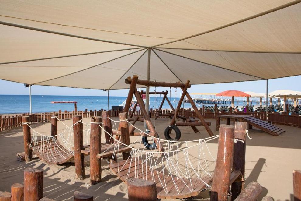 Хотелът има собствен пясъчно-чакълест плаж, дълъг 200 м. 3 открити басейна, без отопление, работно време 07:00-19:00 ч. 1 външен басейн с морска вода, отопляем от ноември до април в зависимост от метеорологичните условия. Басейн в аквапарка (6 пързалки за възрастни и 2 пързалки за деца, работно време 10:00-12:30 ч. и 14:00-18:00 ч. (подлежи на промяна), не се отоплява. 3 закрити басейна (с морска вода, 1 от тях срещу заплащане, работно време 09:00-20:00 ч. В началото и края на летния сезон работата на басейните и пързалките зависи от метеорологичните условия. Плажни чадъри, шезлонги, плажни кърпи се ползват безплатно.