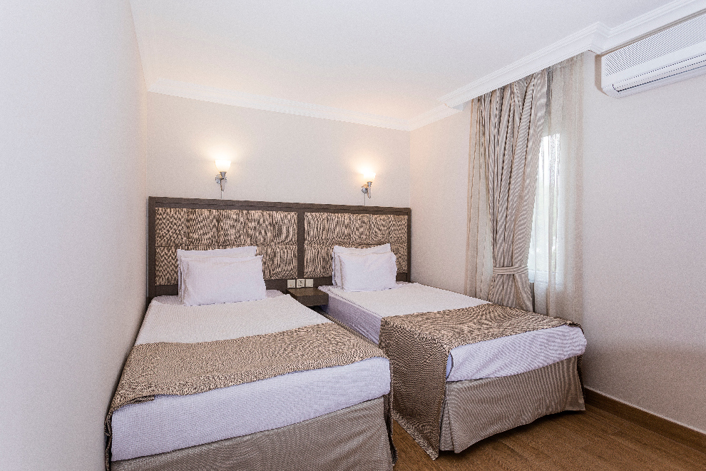 Хотелът посреща своите гости в климатизирани суити с безплатен WiFi, кът за сядане и голям LCD телевизор със сателитни канали. Самостоятелна баня със сешоар, мокет и фотьойл.