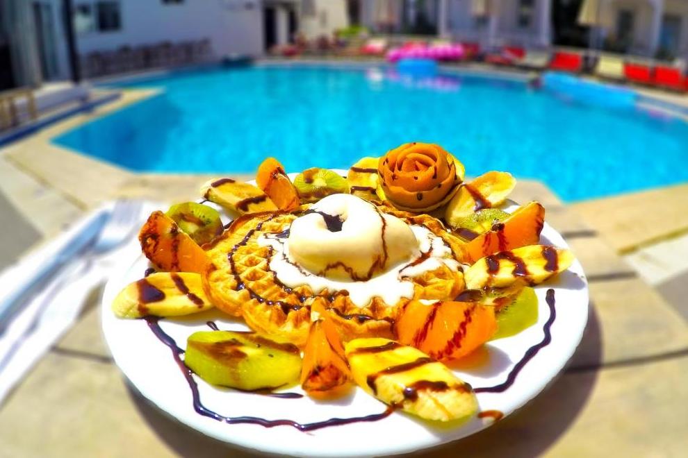Във вътрешния и в открития ресторант се предлагат местни турски ястия и интернационална кухня. Снек-барът предлага освежаващи напитки и леки закуски