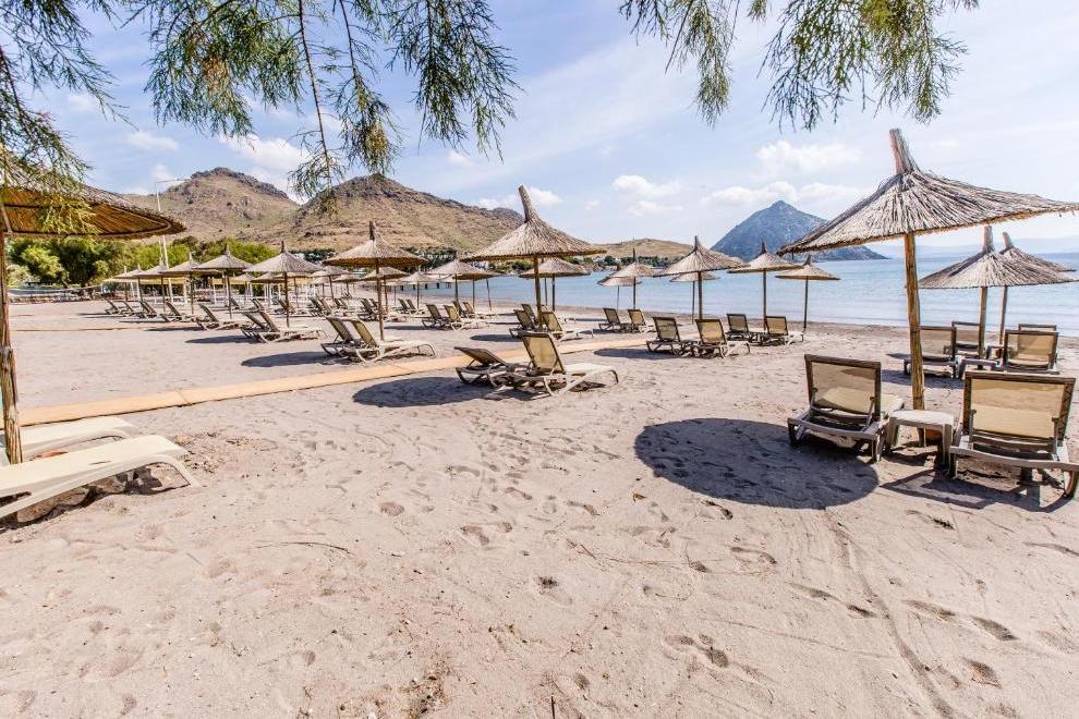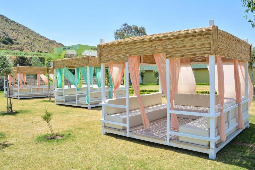 Плажът на хотела се намира в Караинджир, един от най-чистите заливи в Бодрум. Хотелът разполага и с открит басейн. Плаж Акярлар е на 700 метра от хотел Club Marma, а плаж Аспат е на 1,2 км. Чадъри и шезлонги на плажа и при басейна се ползват безплатно, за кабани на плажа се плаща допълнително.